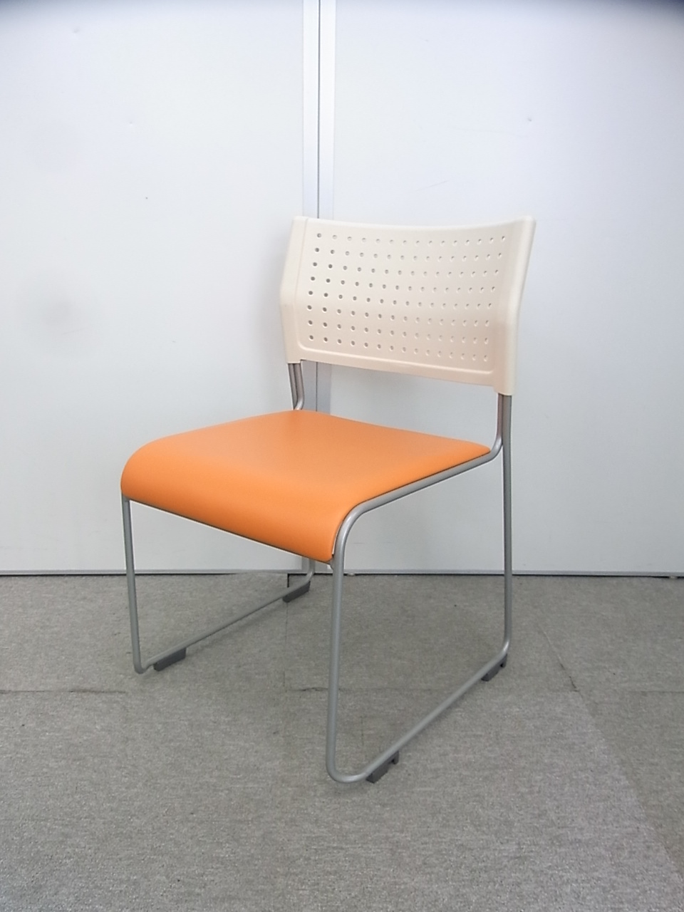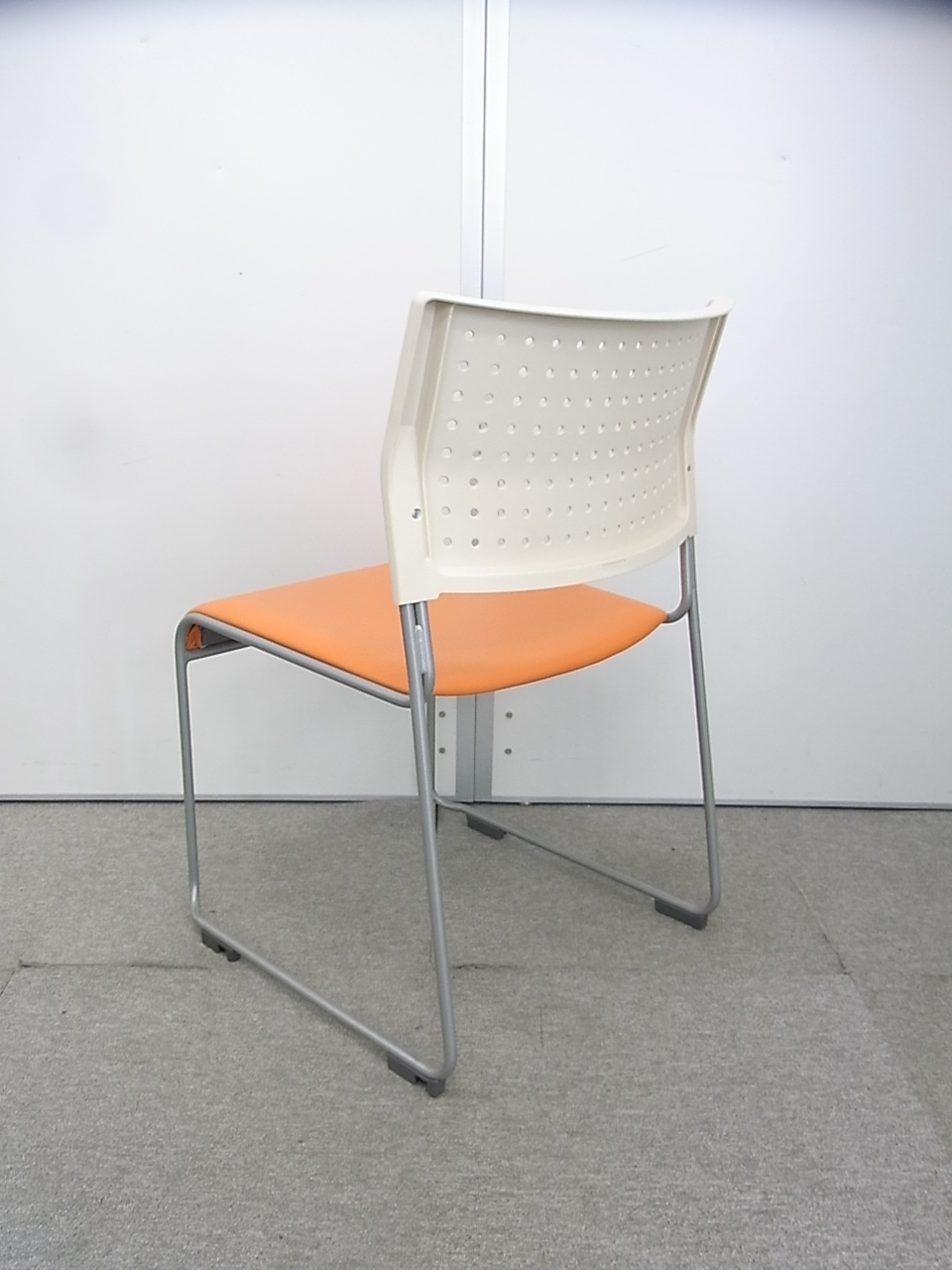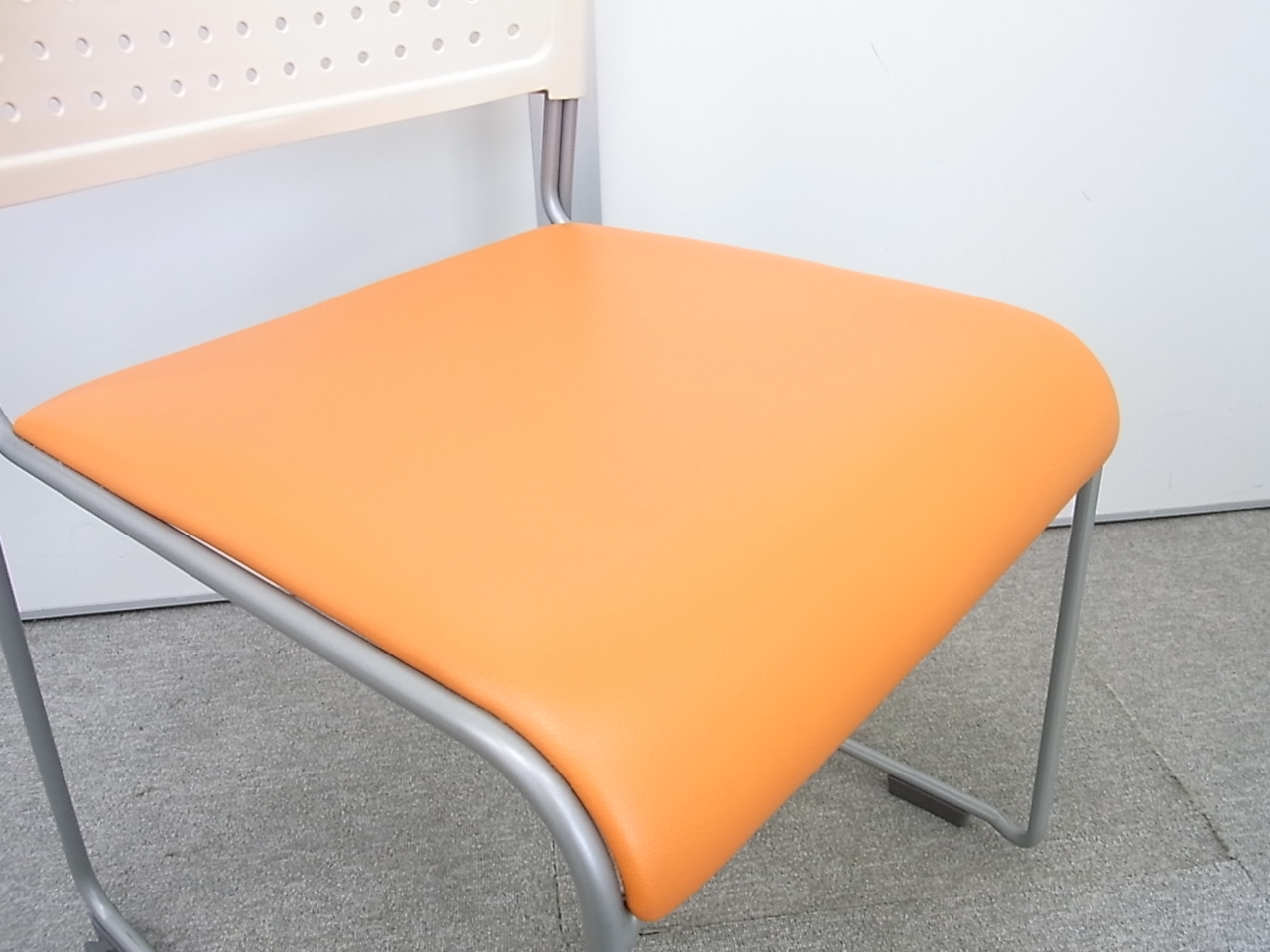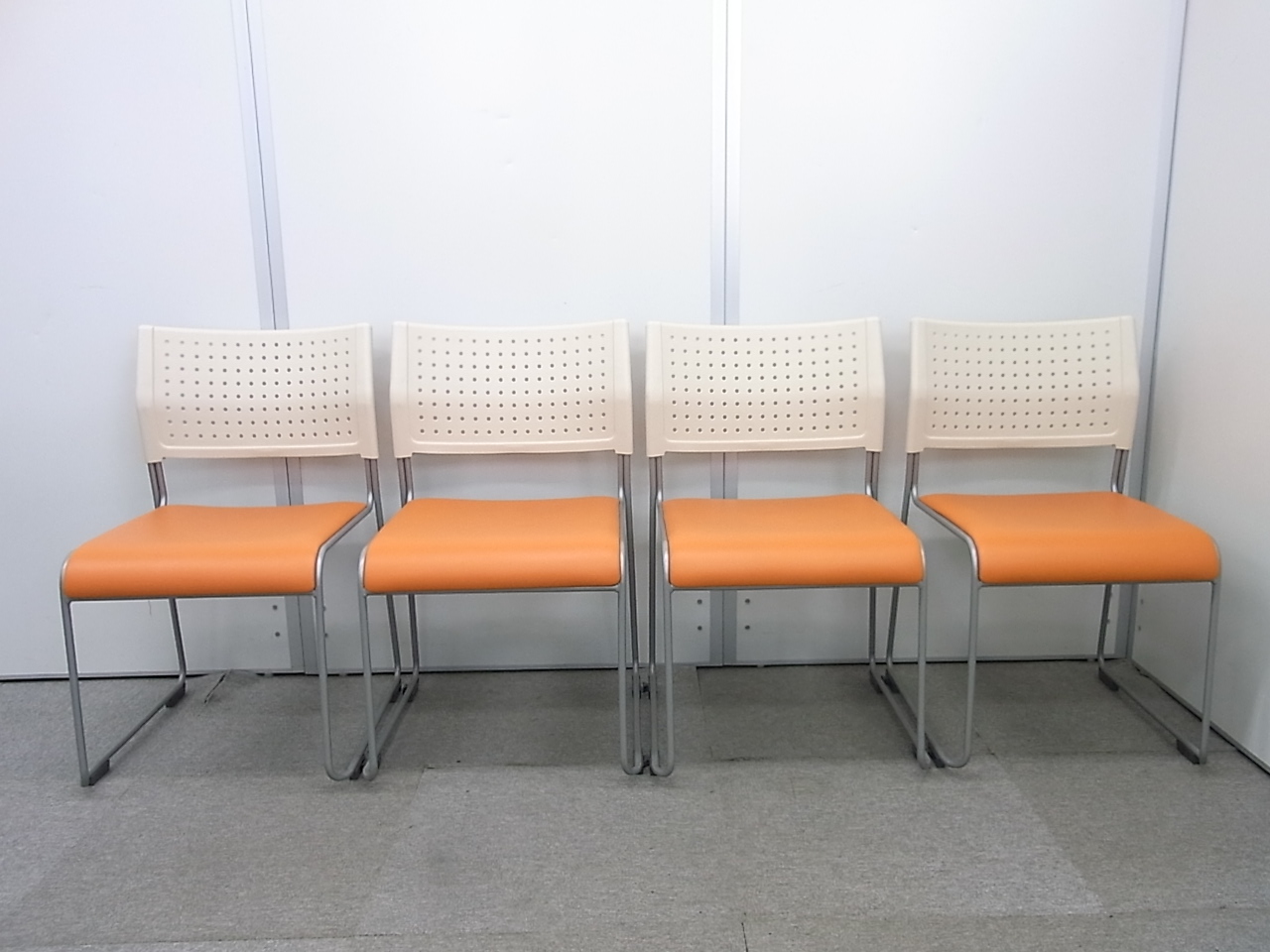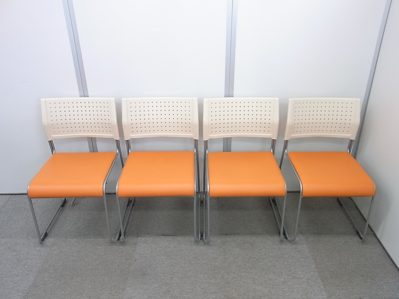 【状態良好品】スタッキング4脚セット 明るいオレンジカラー 重ねて収納可能!- 在庫数
