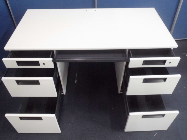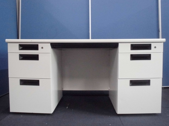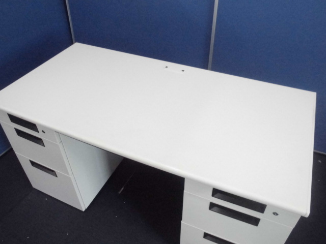 【人気のホワイトデスク】プラス製|両袖机|ホワイト|W1400/D700/H700【鍵付】- 立川・八王子店