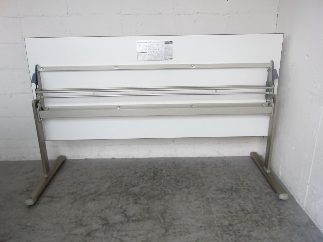 - 一部不具合あり天板歪み、アジャスター無し、キャスター使用不可ようなそのテーブルの本来の効用を果たすための機能以外の一部が使用不可な状態。(例、キャスターロッ ク機能使用不可、棚板無し等がある。)