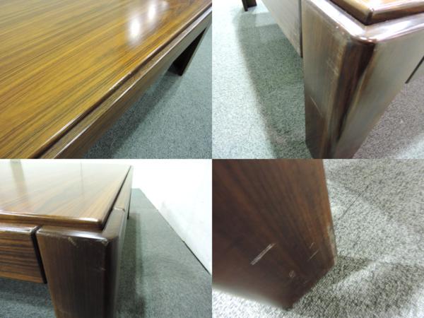 - 目立つ箇所あり傷・凹みが多数、深い傷・凹みが一部ある。(例、天板、幕板、棚板、サイド部分、脚部等にある。)