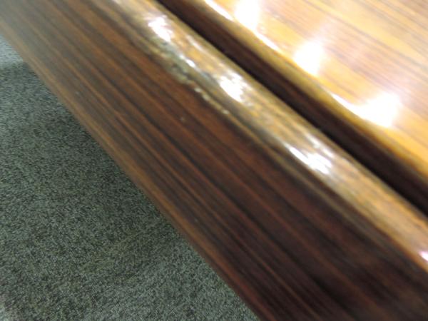 - かなり強い濃い黄ばみ・変色が商品全体にある。(例、天板、幕板、棚板、サイド部分、脚部等にある。)