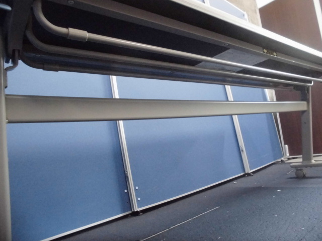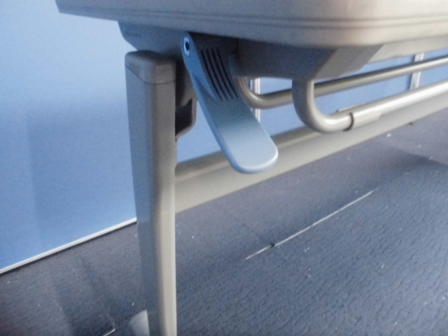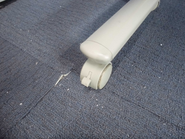- 一部不具合あり天板歪み、アジャスター無し、キャスター使用不可ようなそのテーブルの本来の効用を果たすための機能以外の一部が使用不可な状態。(例、キャスターロッ ク機能使用不可、棚板無し等がある。)