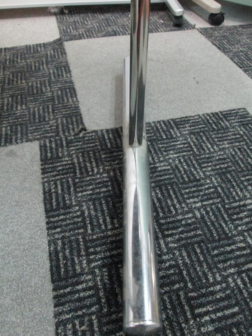 - 一部不具合あり天板歪み、アジャスター無し、キャスター使用不可ようなそのテーブルの本来の効用を果たすための機能以外の一部が使用不可な状態。(例、キャスターロッ ク機能使用不可、棚板無し等がある。)