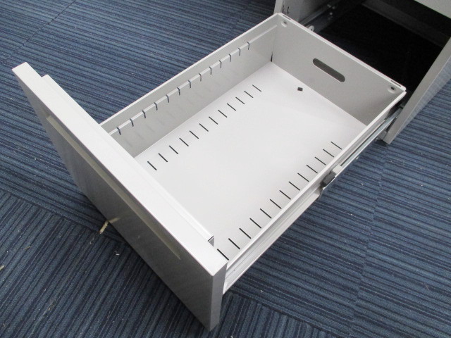 - 引出しは、引くのと同時にロックが外れるラッチ機構を採用しており、飛び出しません。幅広取っ手で開閉楽々です。