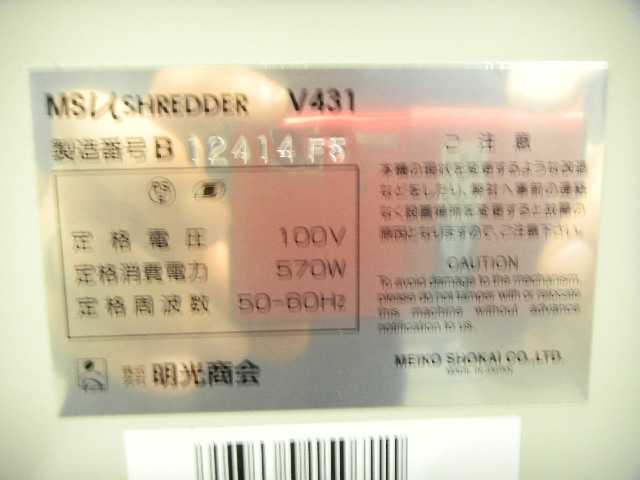 【中古】 MS-V431 明光商会 シュレッダー 139852