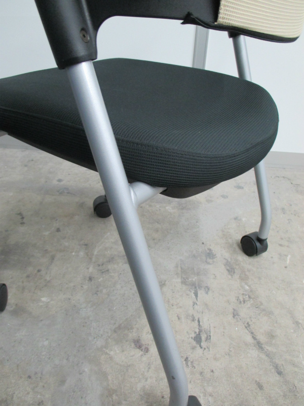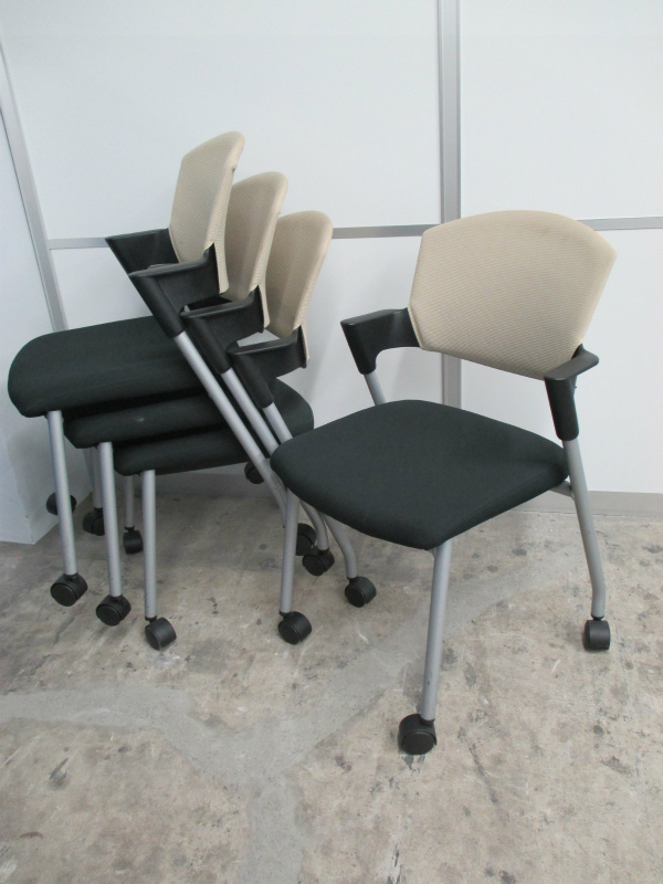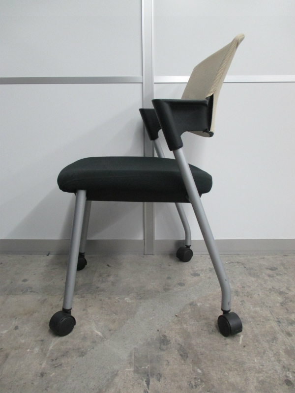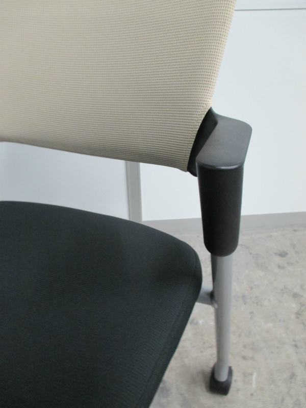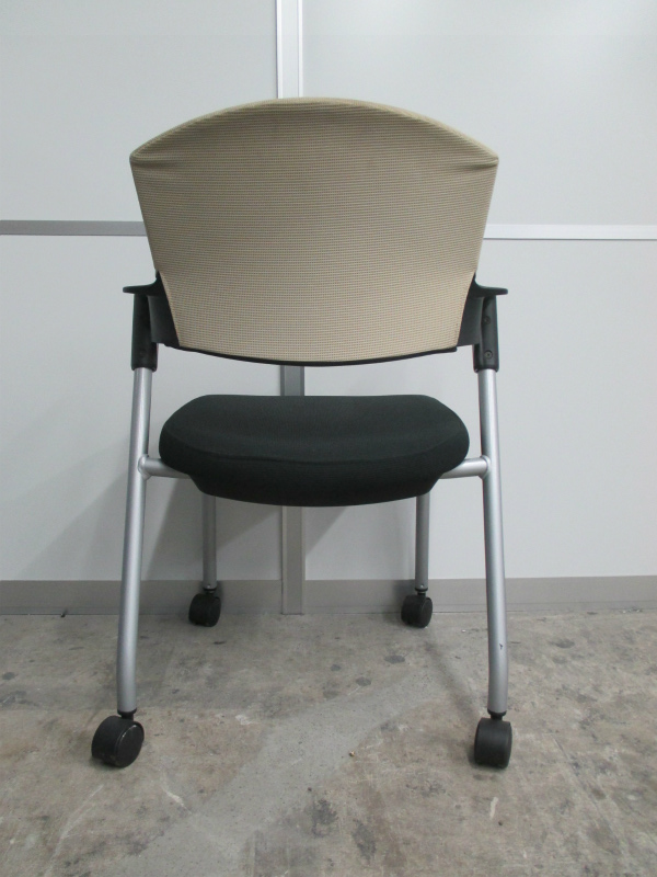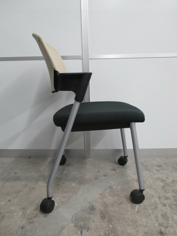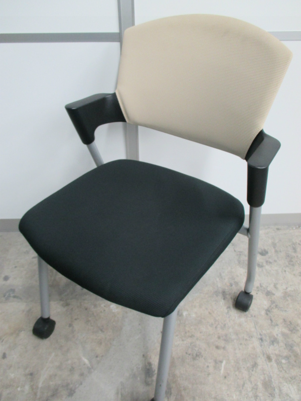 【リラックスできる肘付チェア!】■KOKUYO製 スタッキングチェア プロッティ【ブラック&ベージュ】- 川崎店