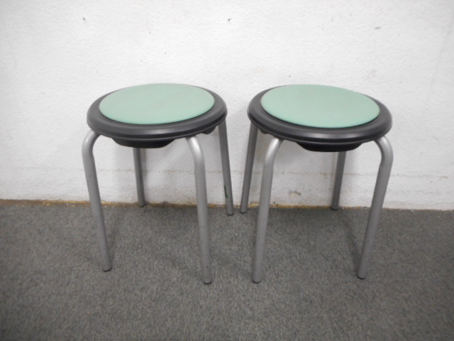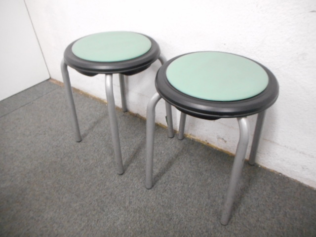 ■丸イス【グリーン】 ■オカムラ(okamura) ■スツール スタッキング オレフィン系レザー- 在庫数