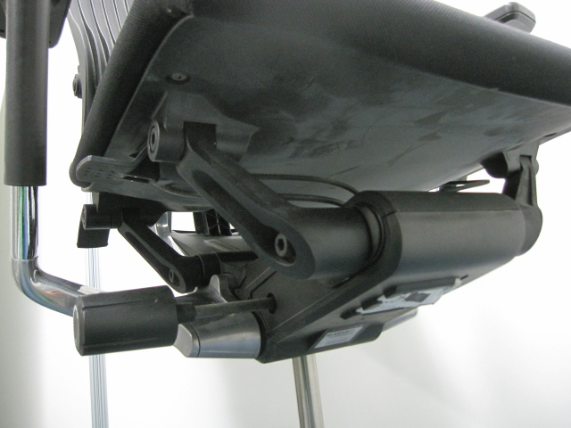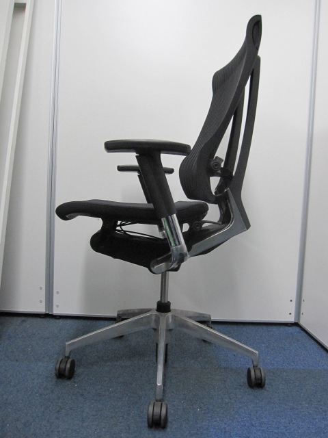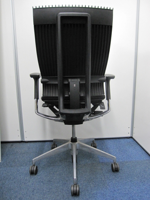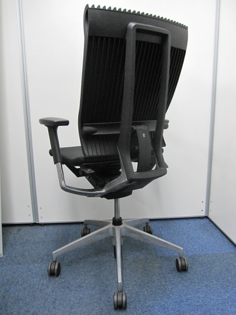 見た目は少し硬そうに見えるエラストマー素材ですが、座ってみると程よいしなり具合のやわらかな座り心地で、背中が痛くなるようなことはまるでありません。面ではなく線で支えることで、背面の通気性の良さは抜群です。