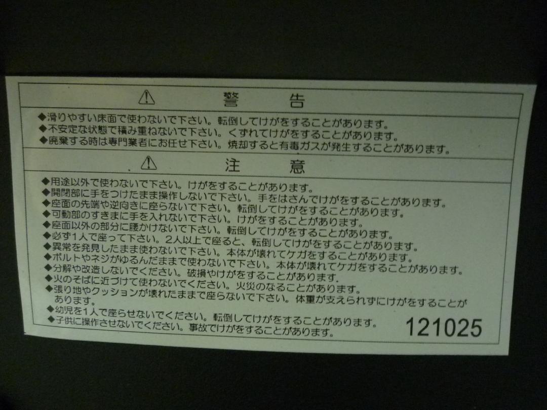 - 若干あり傷・破れ・ほつれ・へたり・しわが一部ある。(例、座面・背もたれ、脚部等にある。)