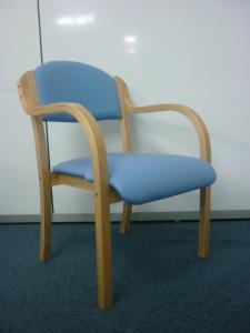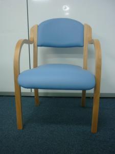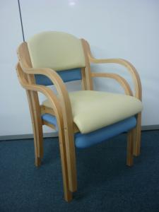 木製スタックチェア お手入れらくらく パステルブルー 取手付 介護用としても使いやすいです。 【オフィス家具】- 仙台店