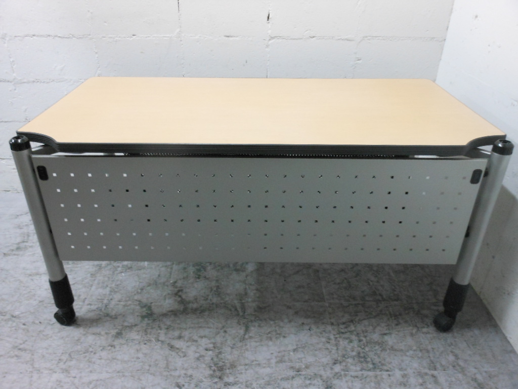 - 一部不具合あり天板歪み、アジャスター無し、キャスター使用不可ようなそのテーブルの本来の効用を果たすための機能以外の一部が使用不可な状態。(例、キャスターロッ ク機能使用不可、棚板無し等がある。)