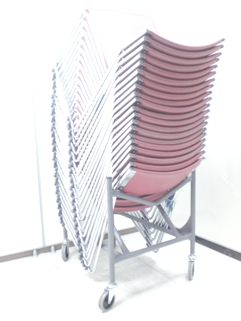 【3セット入荷】専用台車付きでお買い得!! スタッキングチェア20脚セット 【大量ロット商品】- 京都東寺店