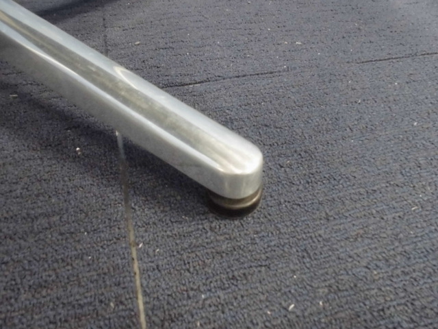 - 一部不具合あり天板歪み、アジャスター無し、キャスター使用不可ようなそのテーブルの本来の効用を果たすための機能以外の一部が使用不可な状態。(例、キャスターロッ ク機能使用不可、棚板無し等がある。)
