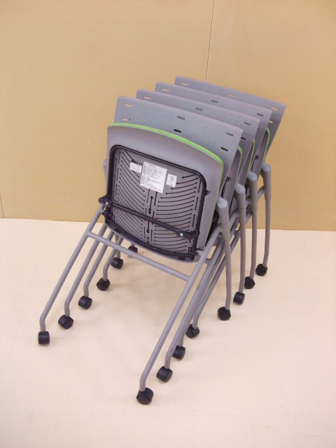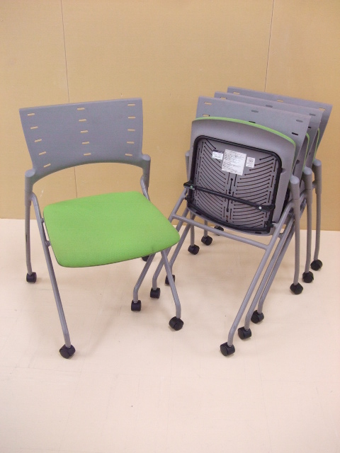 【祝!足立・葛飾店オープン】イトーキ製 マノスシリーズ ネスティングチェア 爽やかなライトグリーン キャスター付きで移動も楽々!【4脚セットで1,000円OFF】- 足立・葛飾店