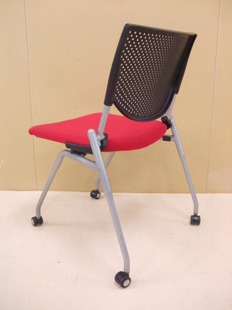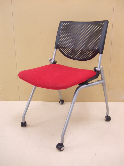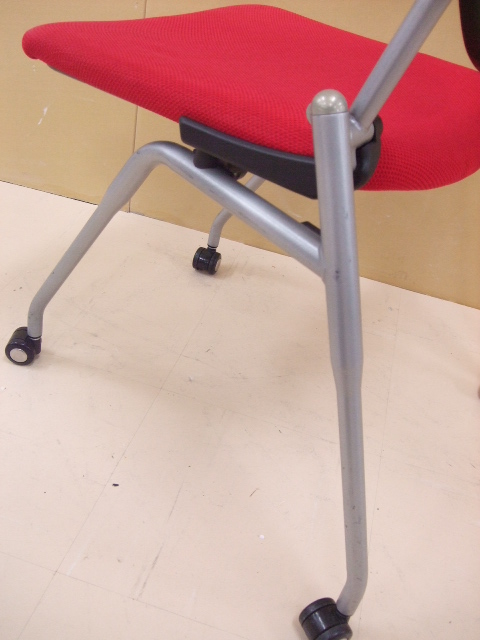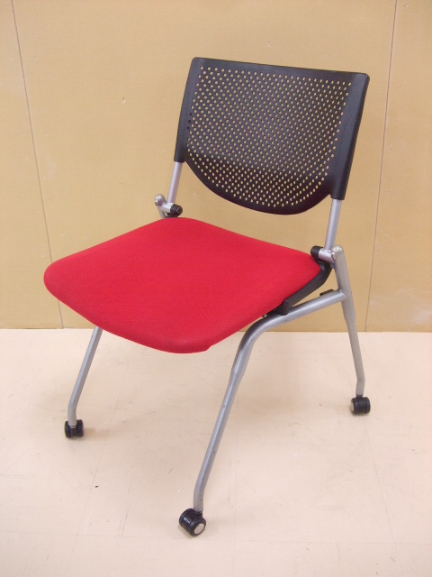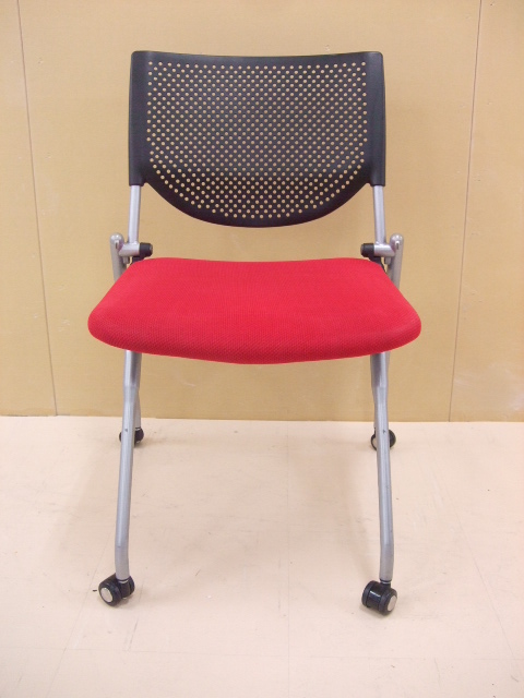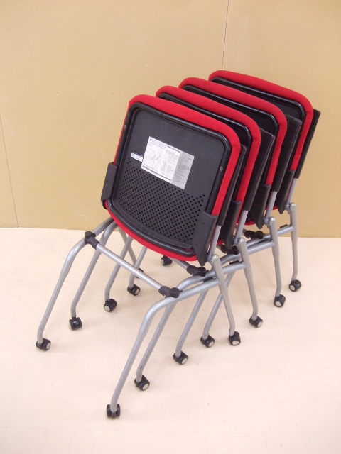 【祝!足立・葛飾店オープン】オカムラ製 プロスタックチェア ネスティングチェア 鮮やかなレッド キャスター付きで移動も楽々!【4脚セットで1,000円OFF】- 足立・葛飾店