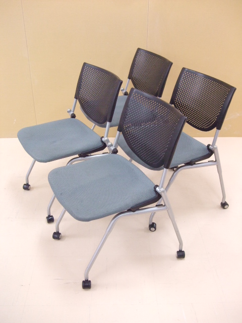 【祝!足立・葛飾店オープン】オカムラ製 プロスタックチェア ネスティングチェア どんなシーンでも合うグレー色 キャスター付きで移動も楽々!【4脚セットで1,000円OFF】- 足立・葛飾店