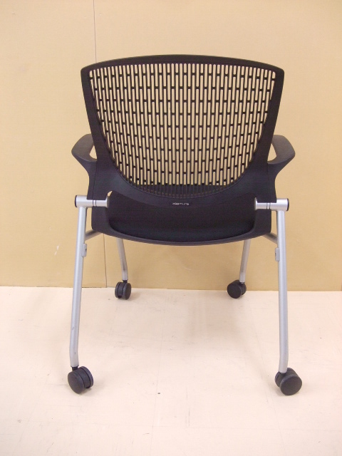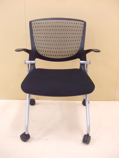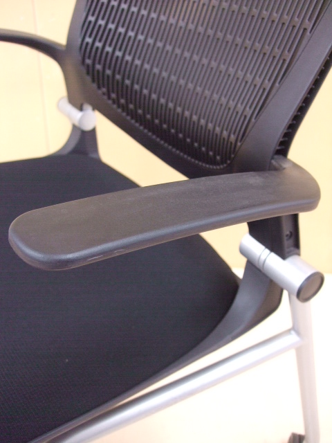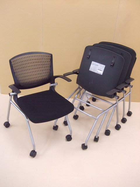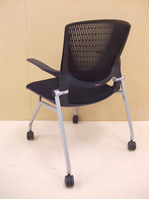 【祝!足立・葛飾店オープン】岡村製作所 グラータチェア ブラック色 ネスティングチェア 肘付きキャスター付き デザイン性が高く、座り心地も良いです!【人気商品】- 足立・葛飾店