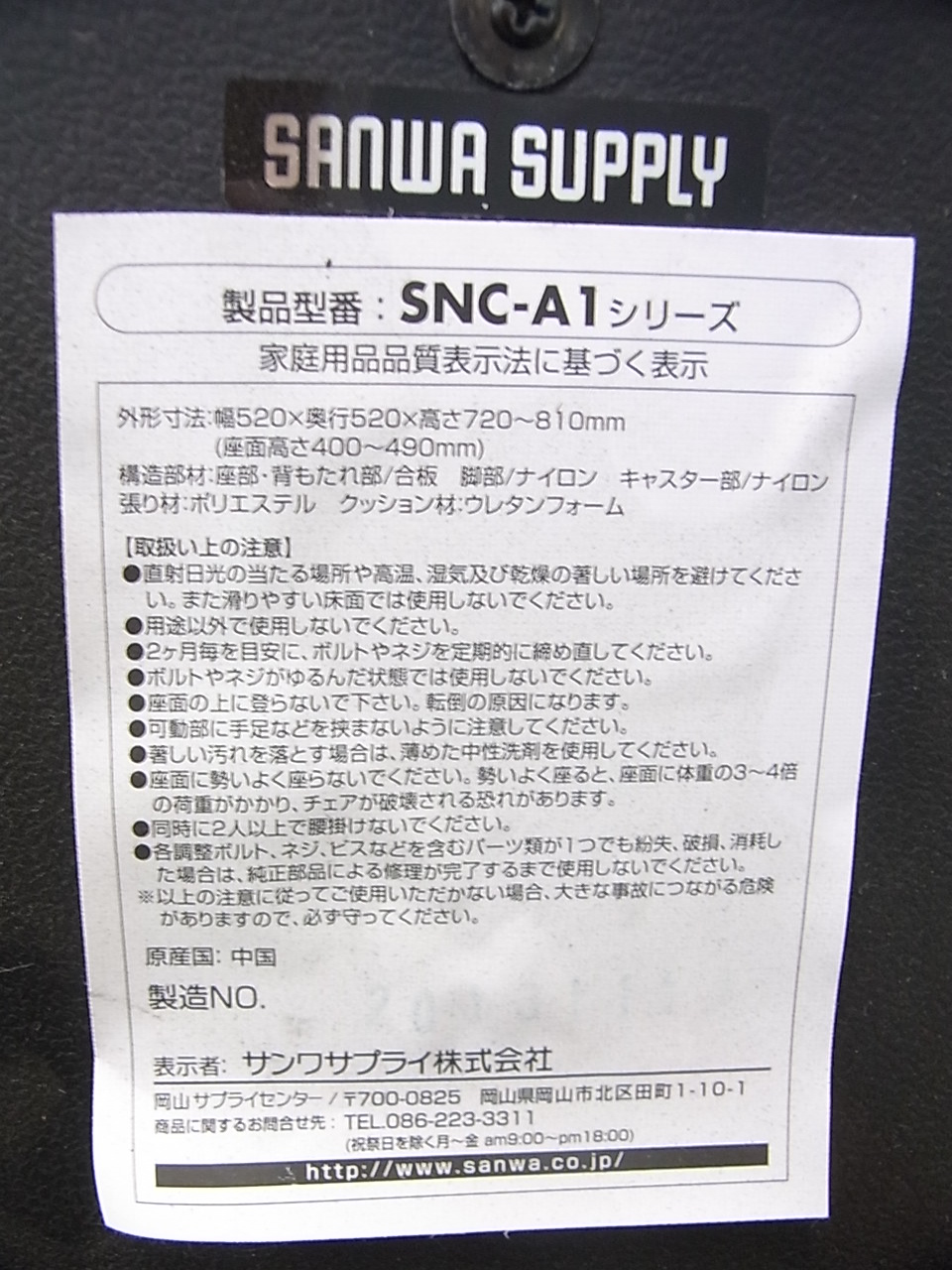 - 不具合多数そのチェアの本来の効用を果たすための機能に不具合ある。(例、オフィスチェアの上下昇降キャスター付きミーティングチェアのキャスター使用不可のような不 具合)