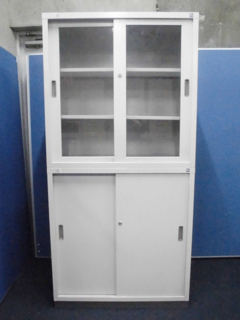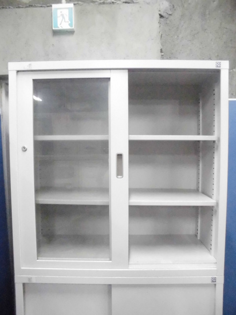【ラス1訳有価格】ガラス引き戸+スチール引き戸|下段棚板1枚|上下連結不可商品です。- 立川・八王子店