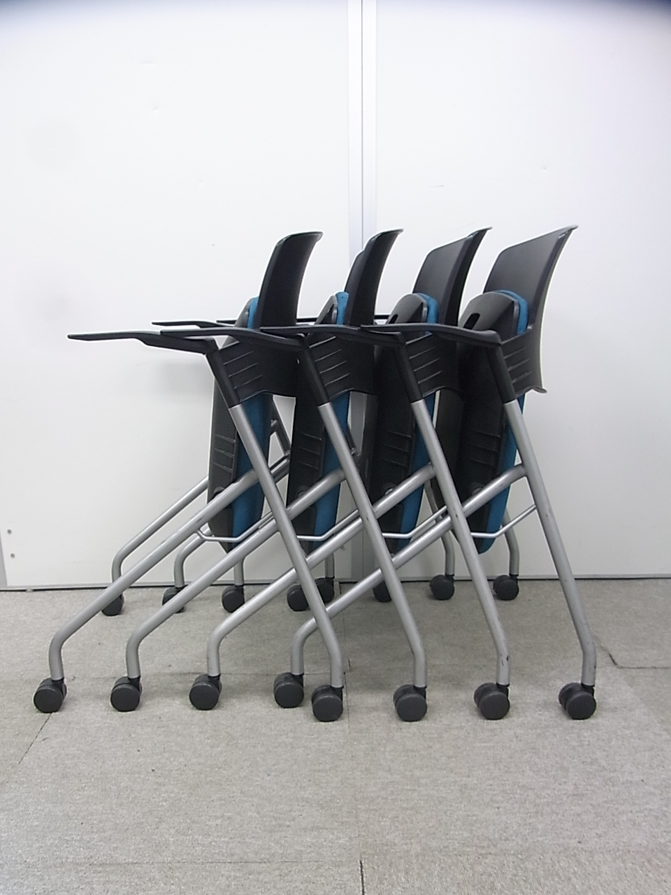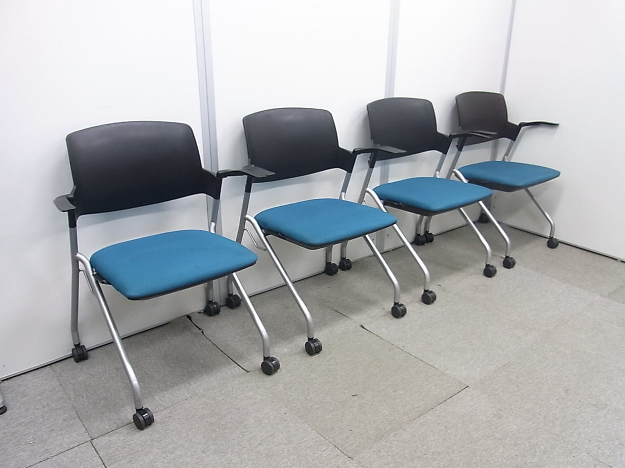 【4脚入荷!】キャスター付き 折りたたみ可能!機能性の高いミーティングチェアがお安くなってます!- 在庫数