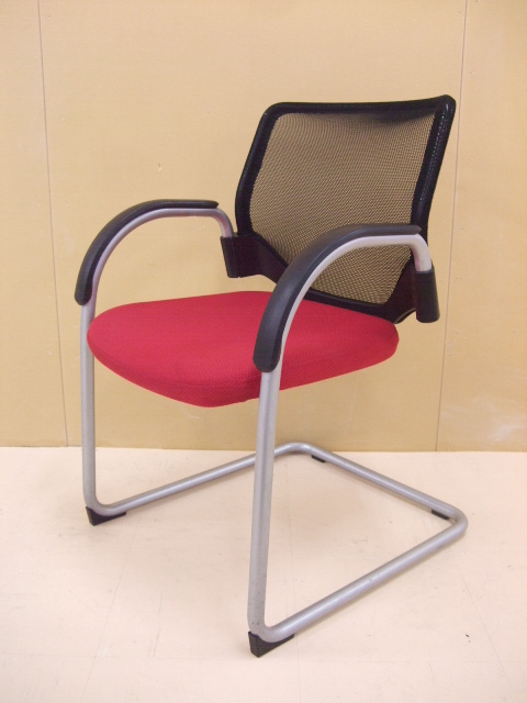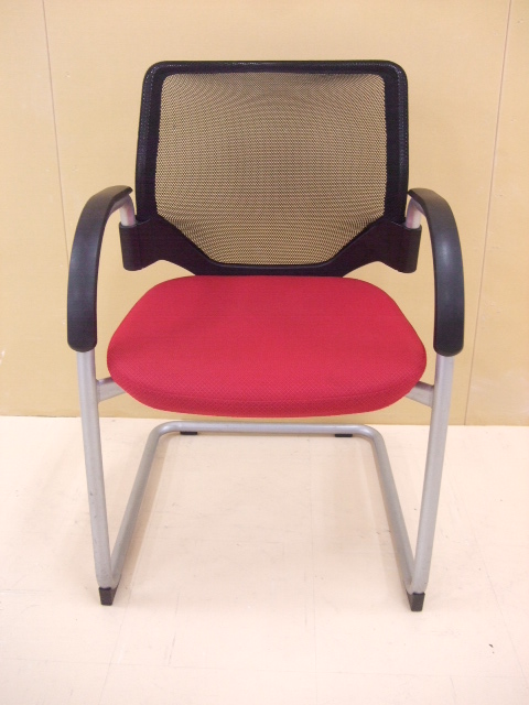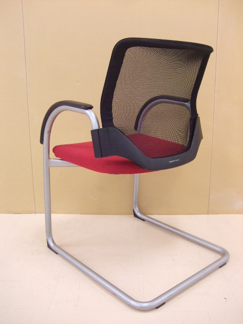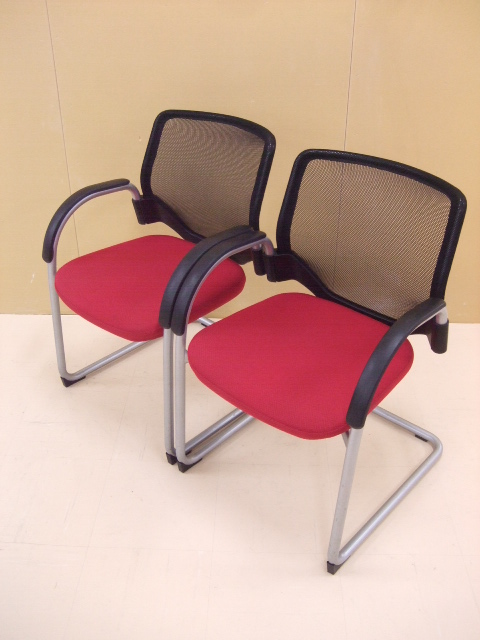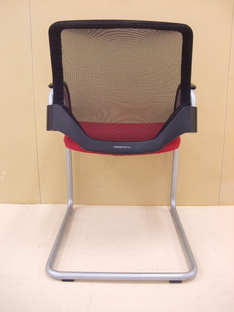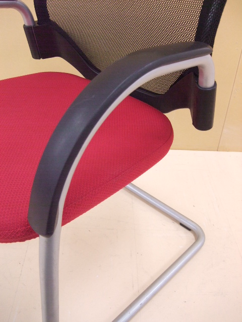 【祝!足立葛飾店オープン特価!】岡村製作所製 ミーティングチェア エアリシリーズ■夏を待ちわびた元気なレッド!■背面メッシュで涼しい!- 足立・葛飾店