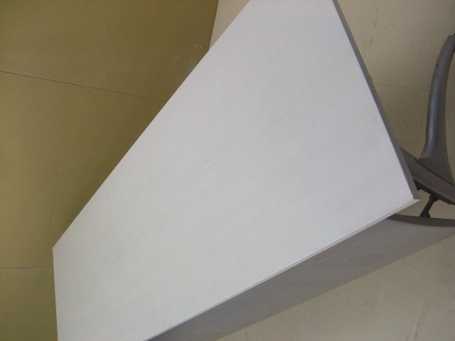 - かなり強い濃い黄ばみ・変色が商品全体にある。(例、天板、幕板、棚板、サイド部分、脚部等にある。)