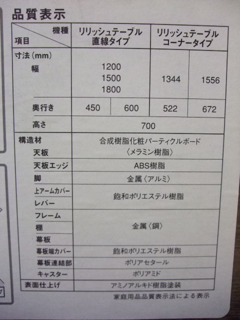 - 一部不具合あり天板歪み、アジャスター無し、キャスター使用不可ようなそのテーブルの本来の効用を果たすための機能以外の一部が使用不可な状態。(例、キャスターロッ ク機能使用不可、棚板無し等がある。)