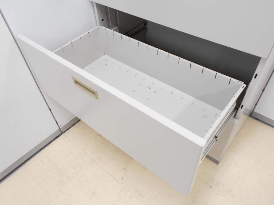 - 一部不具合ありそ引出の開閉不可、施錠不可、棚板無しといったの書庫の本来の効用を果たすための機能以外の一部が使用不可(例、扉、引出の開閉がしづらいなどがある。 )