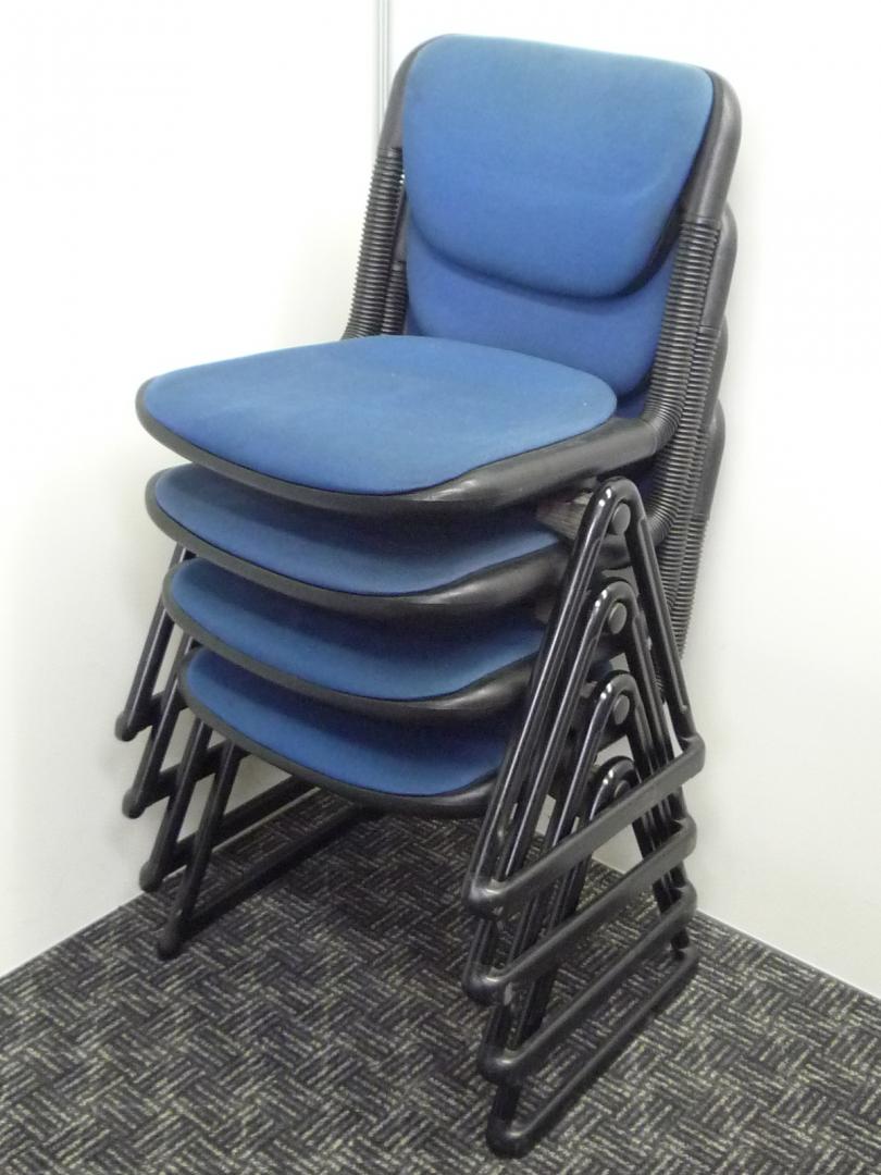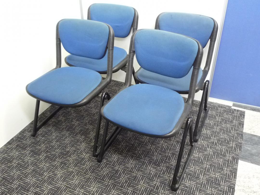 【4脚セット!】■暗めのブルー■イトーキ製スタッキングチェア■重ねて収納出来るので省スペース■身体の動きに合わせて背もたれが動く- 埼玉本店