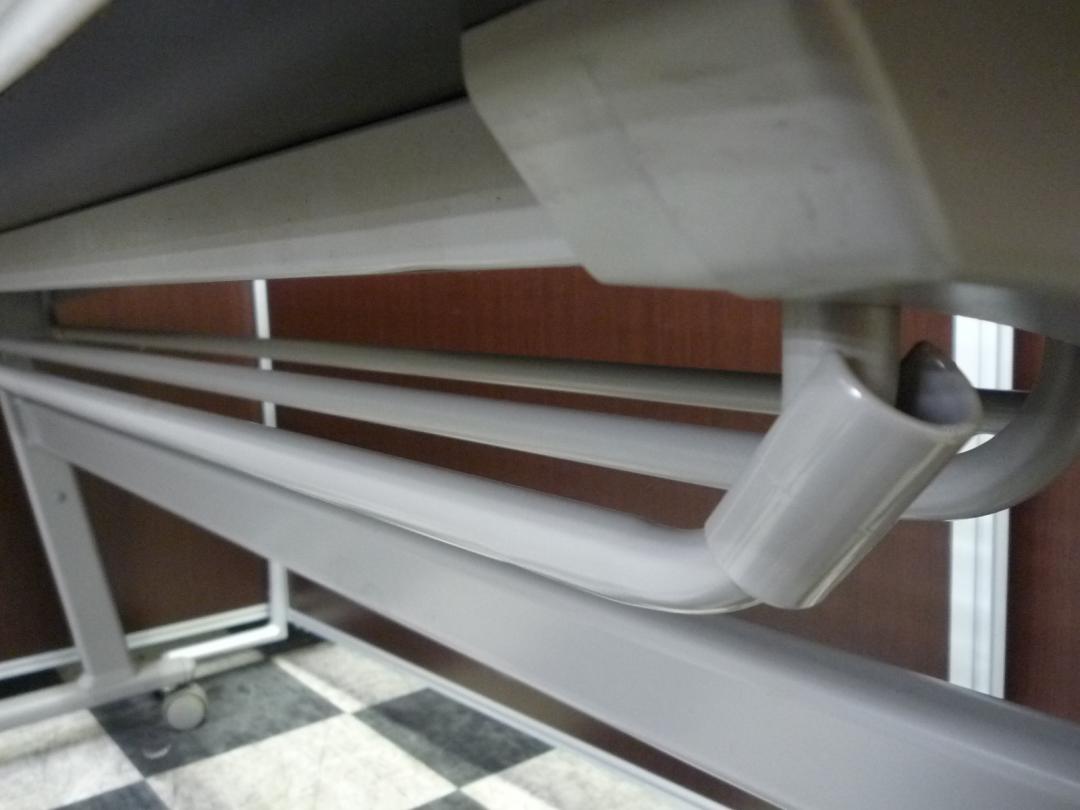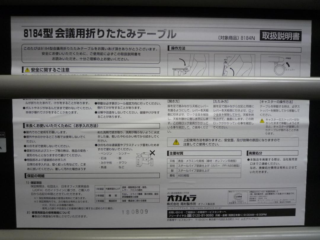 - 一部不具合あり天板歪み、アジャスター無し、キャスター使用不可ようなそのテーブルの本来の効用を果たすための機能以外の一部が使用不可な状態。(例、キャスターロッ ク機能使用不可、棚板無し等がある。)