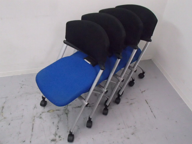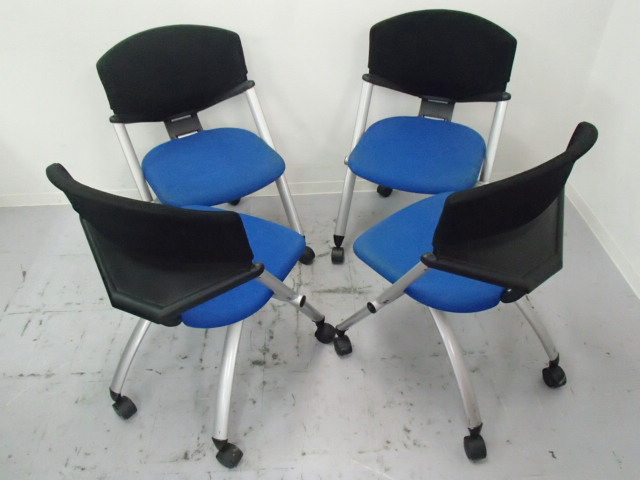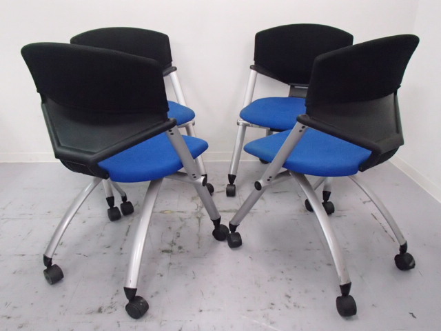 【4脚セット】|ミーティングチェア|コルサチェア・肘無し・キャスター付き|ブルー×ブラック- 大阪・堺店