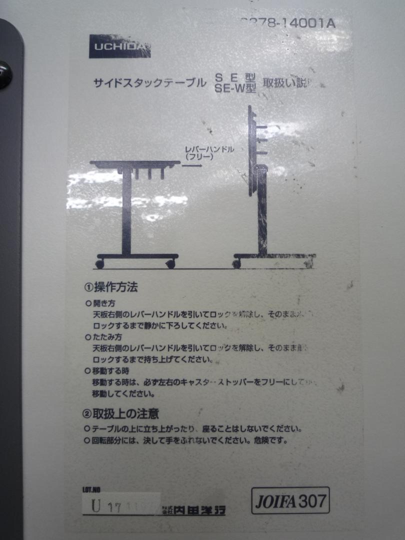 - 一部不具合あり天板歪み、アジャスター無し、キャスター使用不可ようなそのテーブルの本来の効用を果たすための機能以外の一部が使用不可な状態。(例、キャスターロッ ク機能使用不可、棚板無し等がある。)