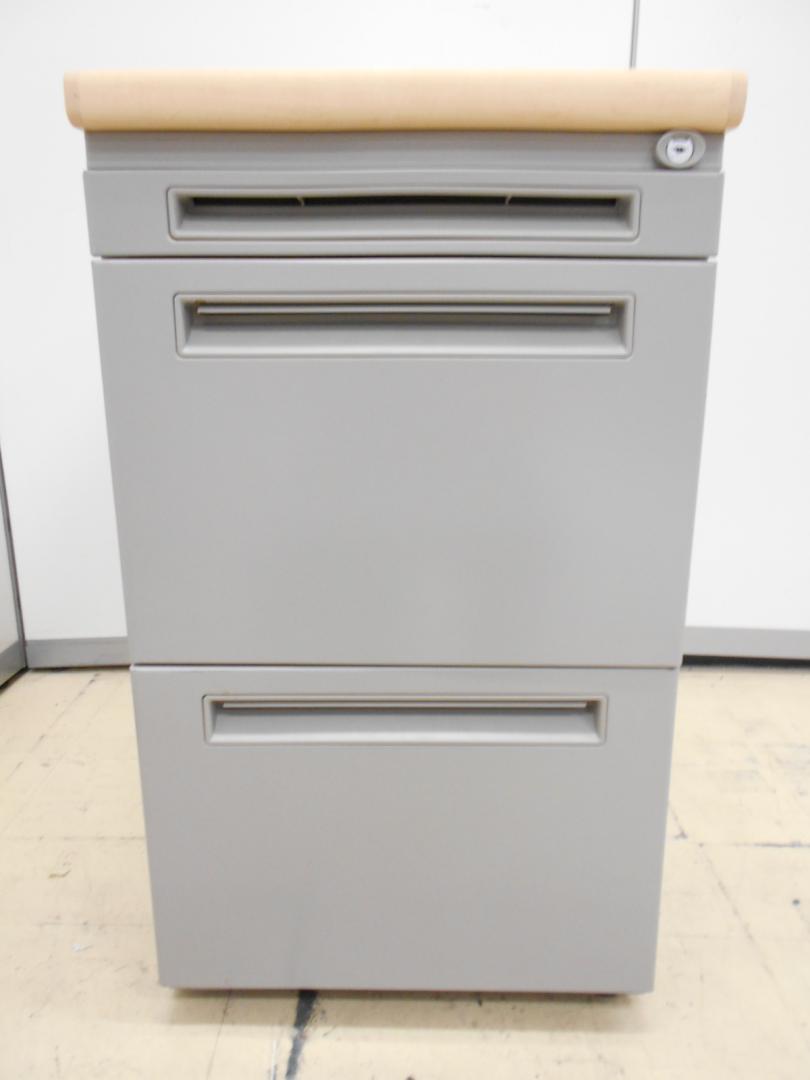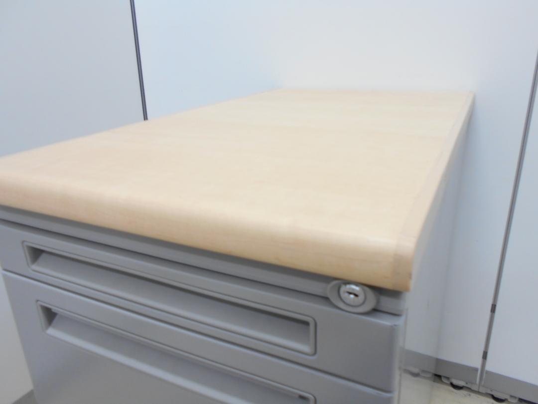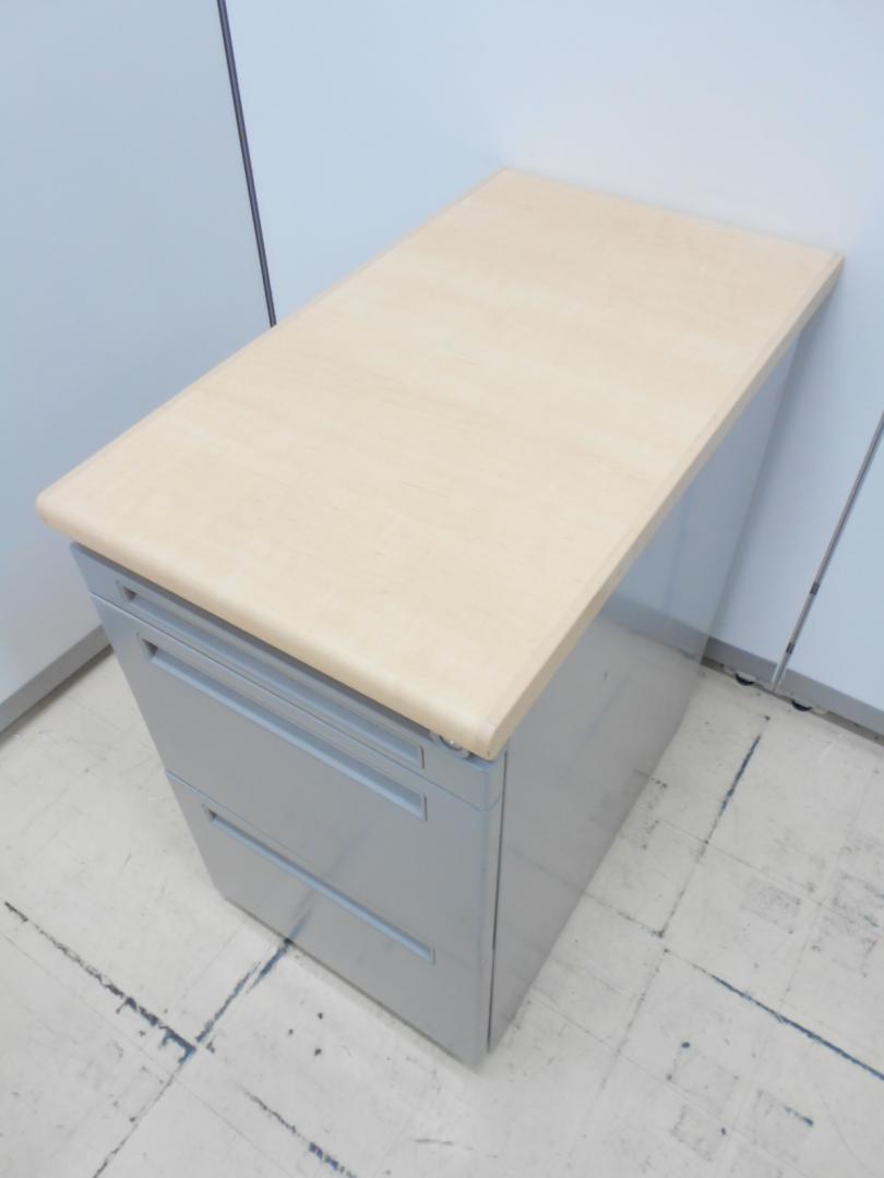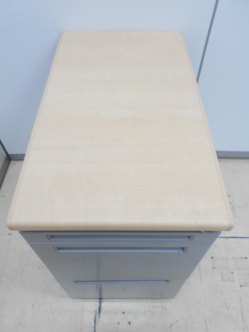 レアなナチュラル天板の内田洋行製FEEDシリーズ3段脇机です。