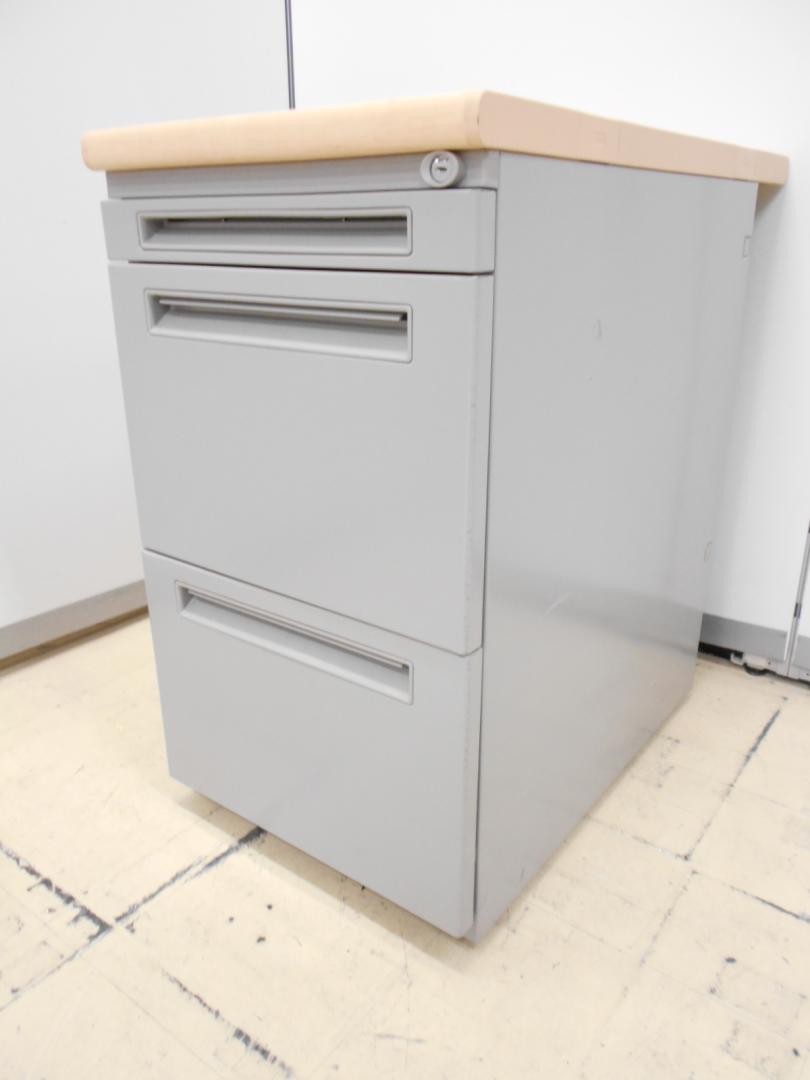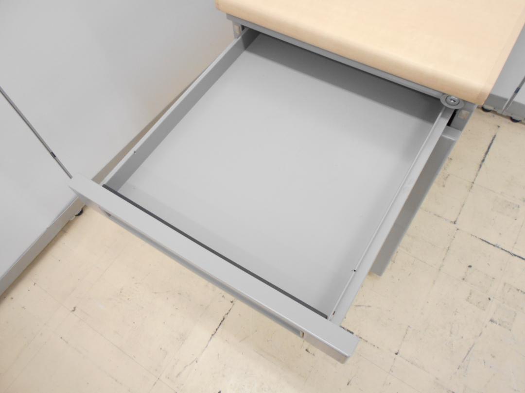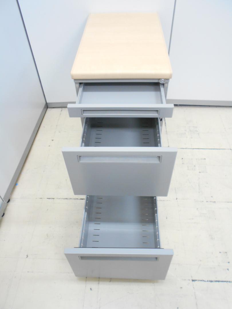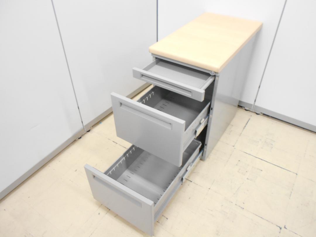 レアなナチュラル天板の内田洋行製FEEDシリーズ3段脇机です。