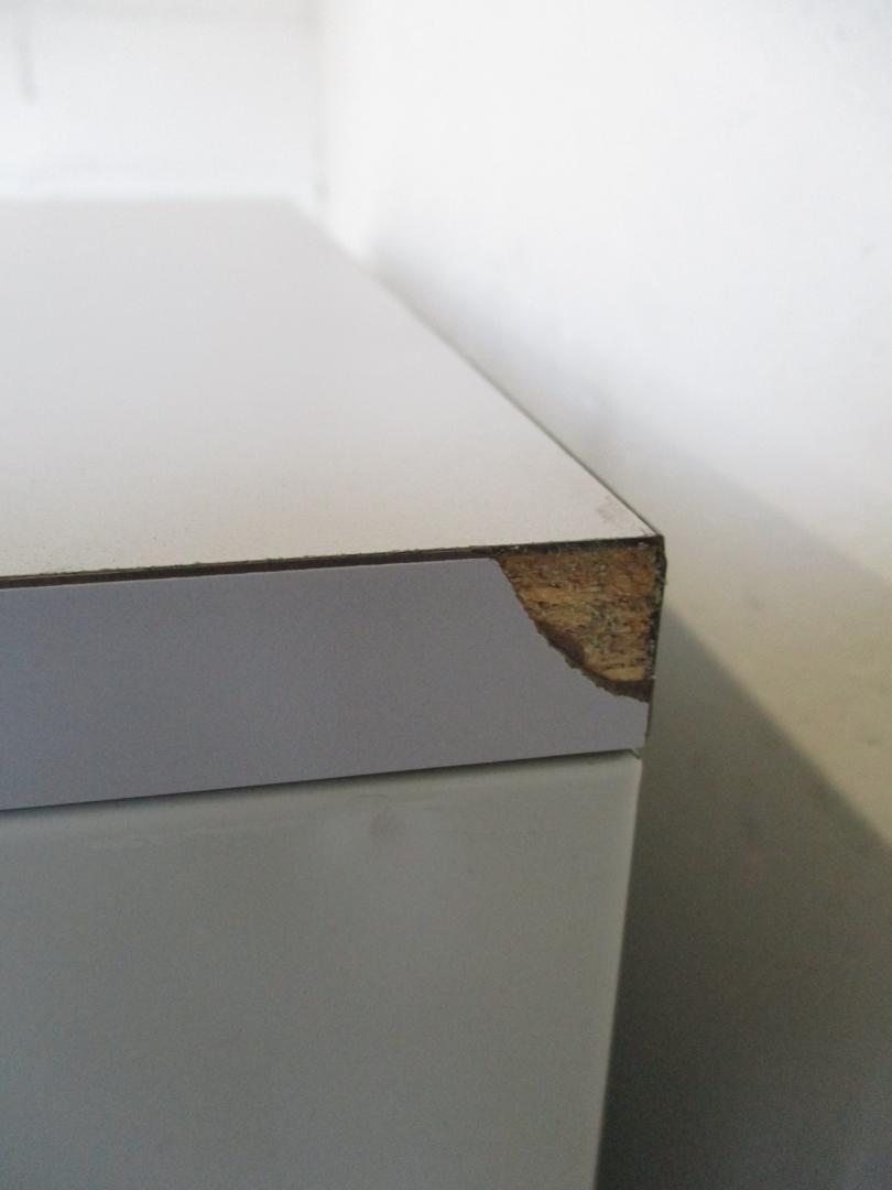 - かなり強い濃い黄ばみ・変色が商品全体にある。(例、天板、正面、背部、サイド部分にある。)
