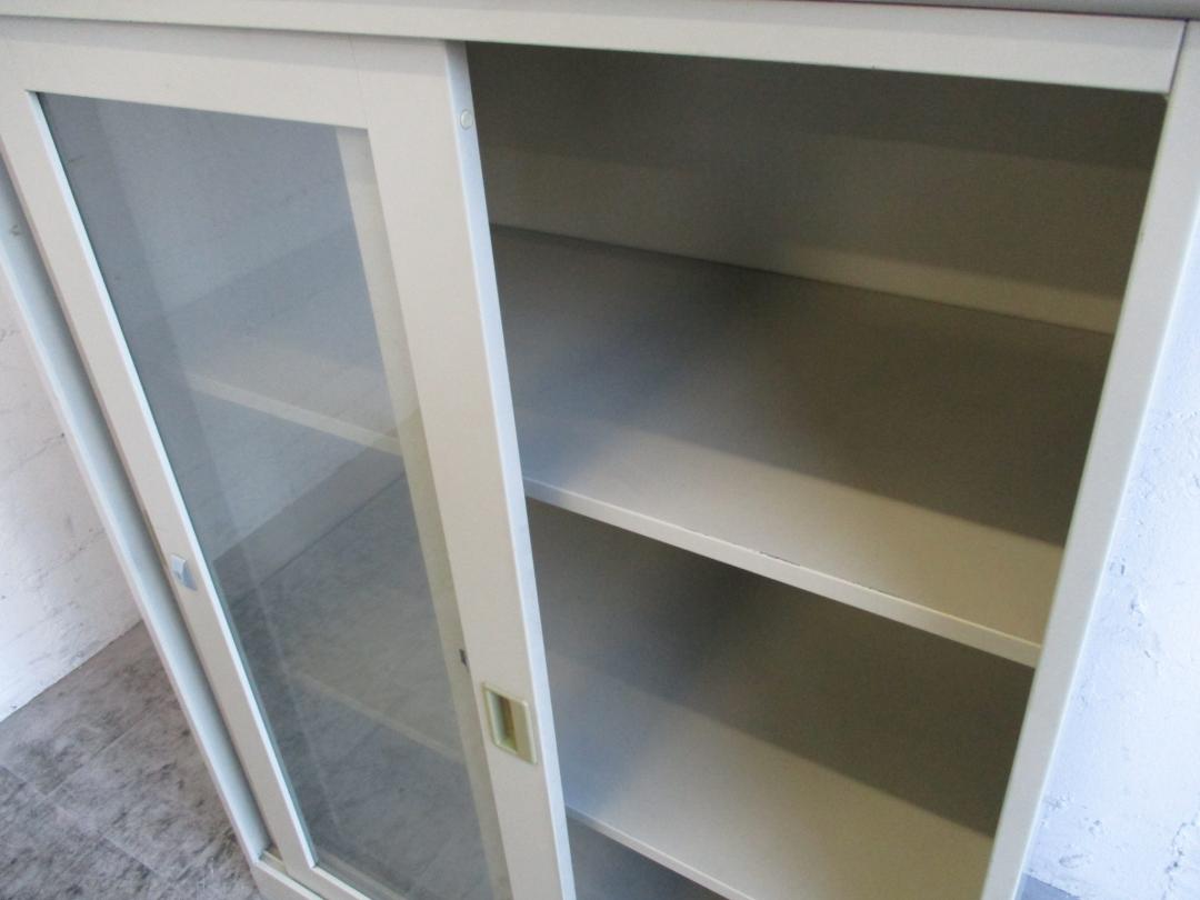 中身の確認しやすいガラス戸タイプの引違書庫です。