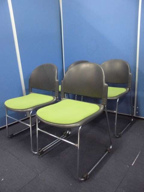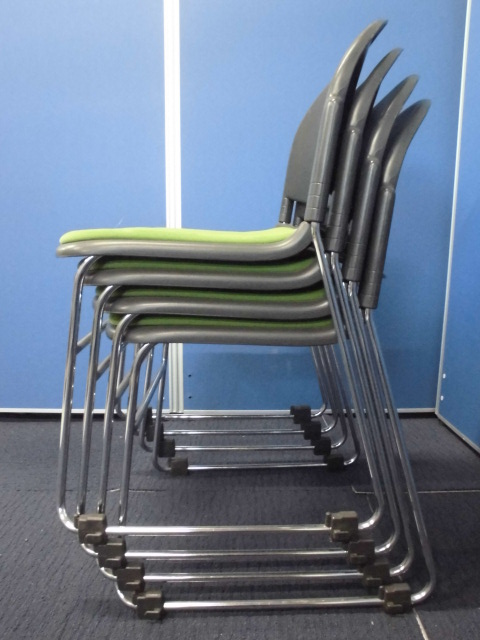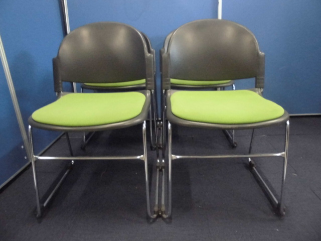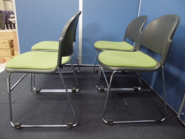 【16脚揃って入荷!】スタッキングチェア/会議用チェア4脚セット|ライムグリーン×ブラック【プラス製】- 立川・八王子店
