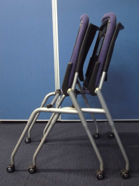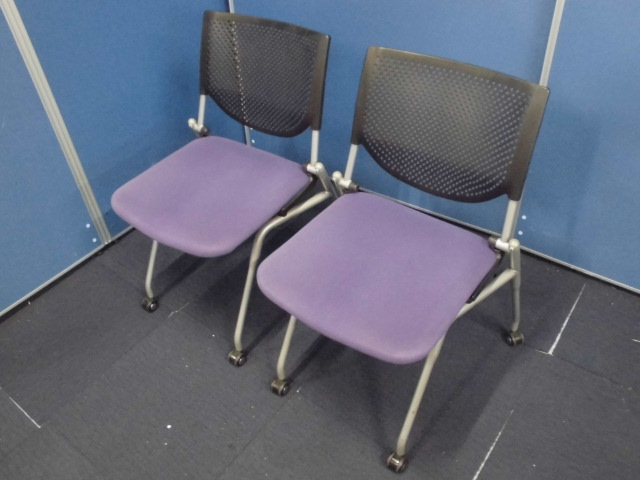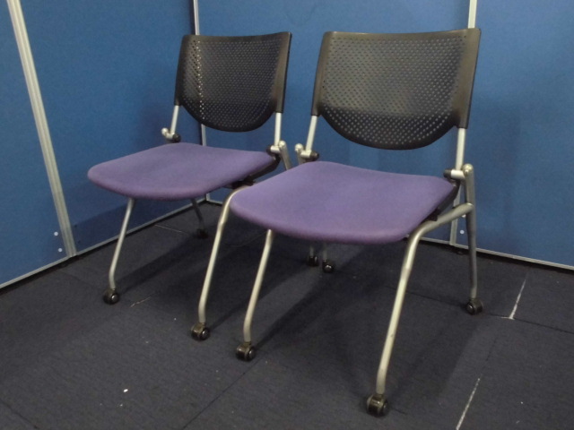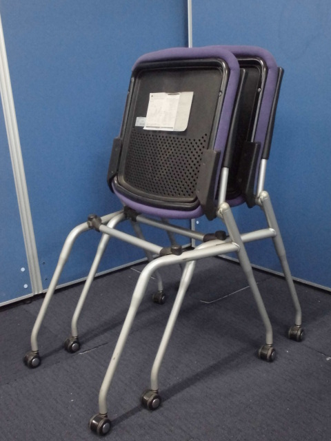 【収納に便利!】オカムラ製プロスタックチェア2脚セット|ネスティングチェア/会議用チェア|パープル×ブラックサーキュラーバリューCO2削減量の算出について
