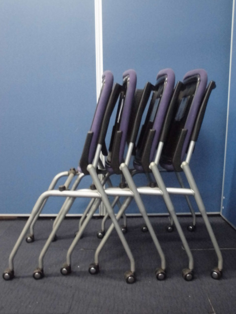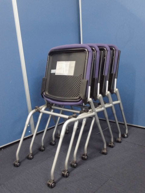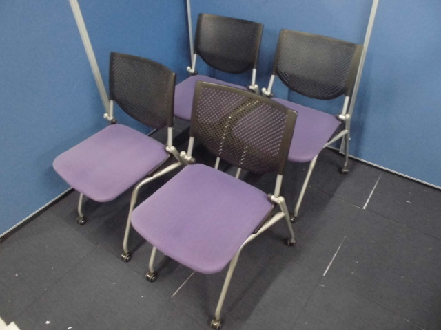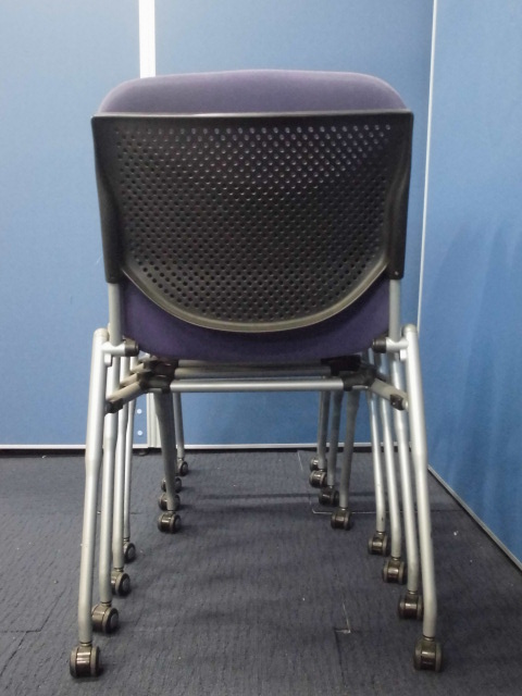 【収納に便利!】オカムラ製プロスタックチェア4脚セット|ネスティングチェア/会議用チェア|パープル×ブラックサーキュラーバリューCO2削減量の算出について