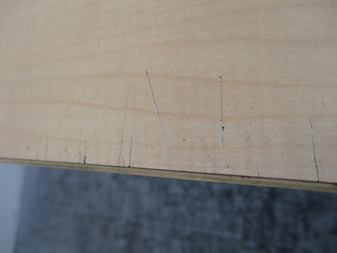 - かなり強い濃い黄ばみ・変色が商品全体にある。(例、天板、幕板、棚板、サイド部分、脚部等にある。)