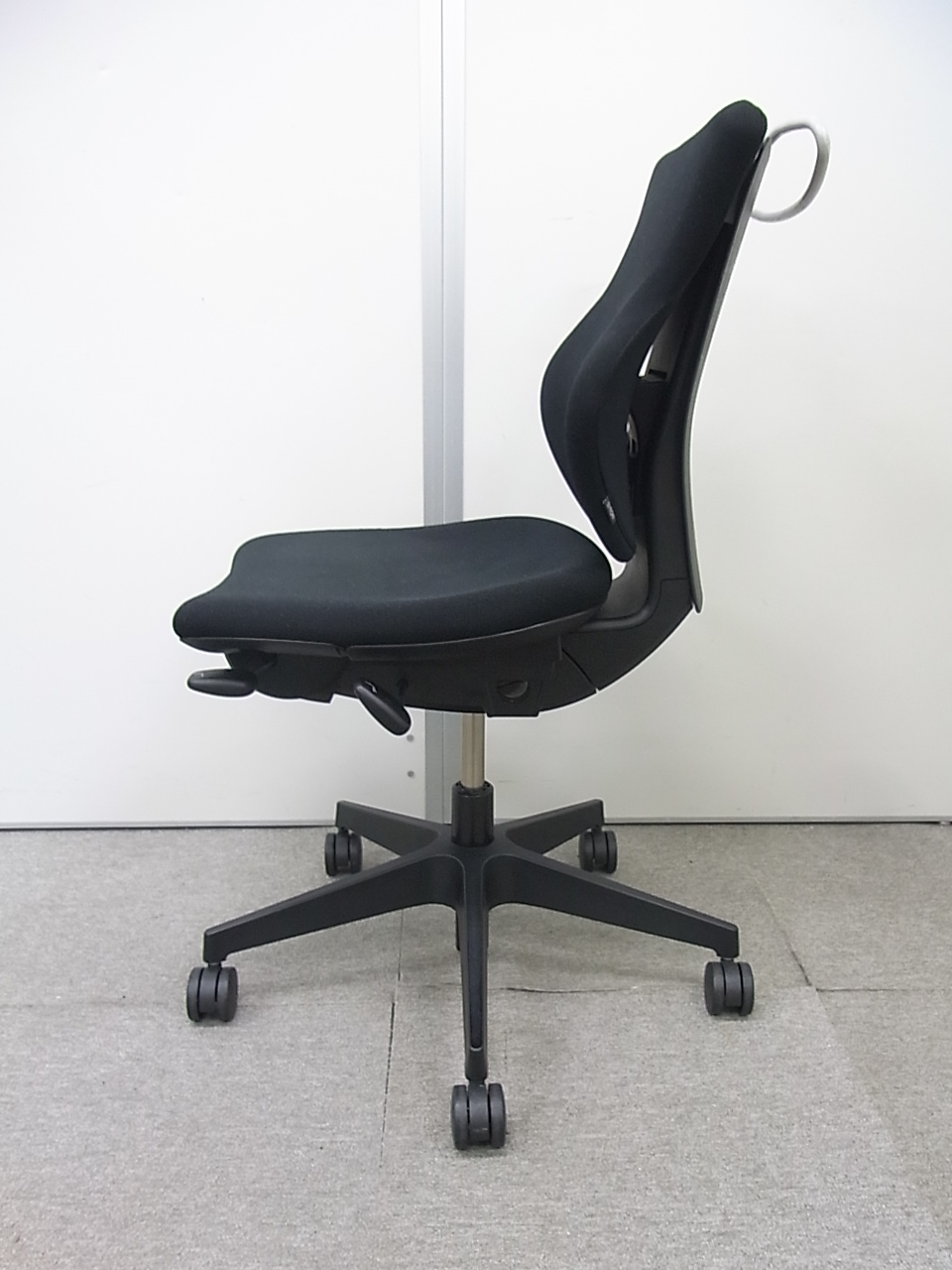- 女性の作業姿勢に多く見られる2つの姿勢を、美しく支える背もたれ形状です。後傾しても背のラインを崩しません。