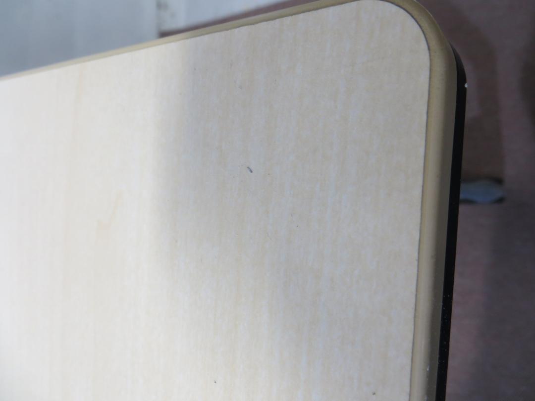 - あり黄ばみ・変色が広い範囲にうっすらある、または濃い黄ばみ・変色が一部ある。(例、天板、幕板、棚板、サイド部分、脚部等にある。)