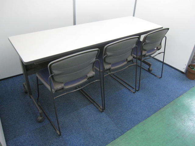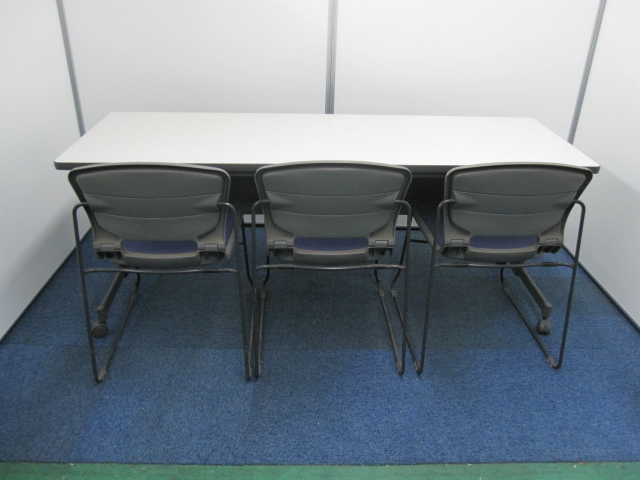 【セット商品】コクヨ製サイドスタックテーブル×1と内田洋行製スタックチェア(カラー:パープル)×3脚【会議テーブルチェアセット】- 品川・三田店