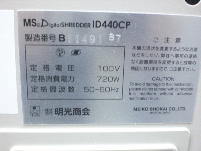 【中古】 MS-ID440CP 明光商会 シュレッダー 143099