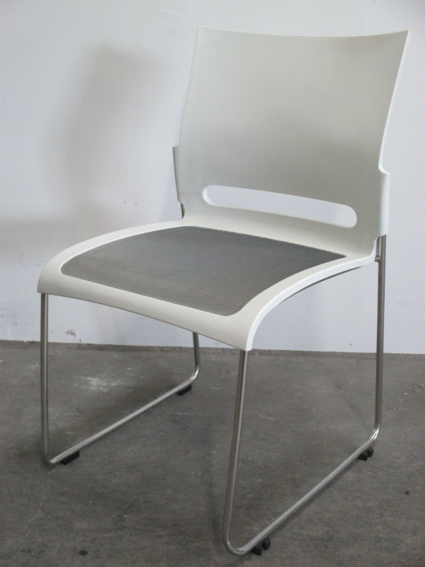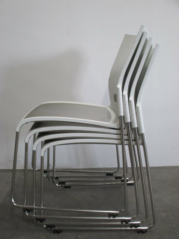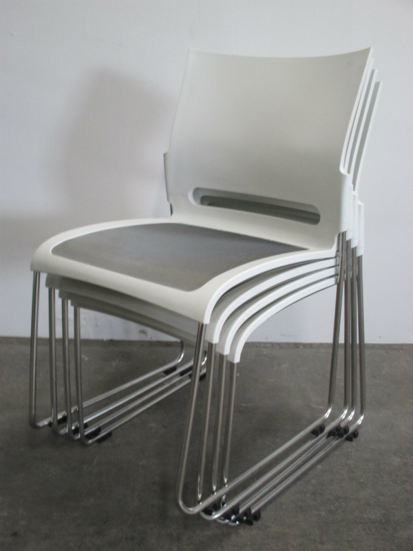 【3セット限定】スタイリッシュなミーティングチェアセット!ホワイトカラーにグレーのアクセントが◎【4脚セット】【レア】- 川崎店