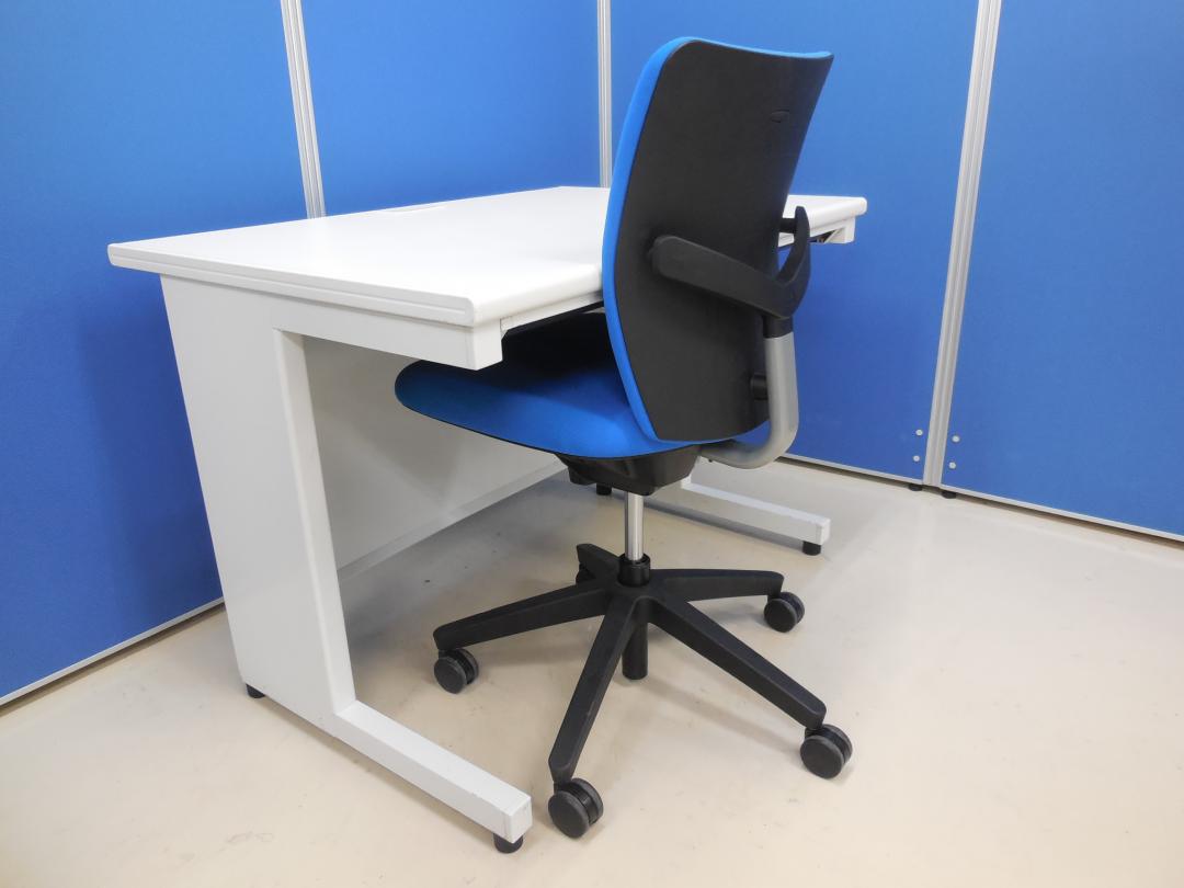 【1000円お得なセット商品】平机×肘無しチェア■プラス製 幅1000mm ホワイト色■内田洋行製 エポチェア ブルー色【状態良好】- 足立・葛飾店