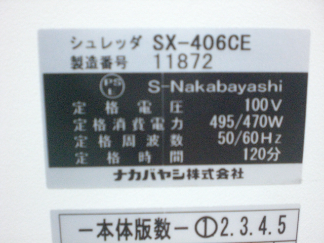 【中古】 SX-406CE ナカバヤシ シュレッダー 143203