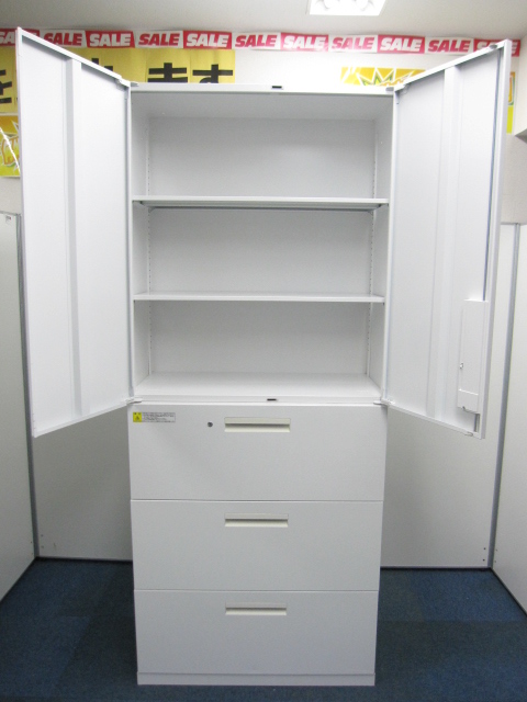 【輝く白さ!】便利セット上段3枚扉&下段3段書庫仕様※まっしろホワイトカラー◆内田洋行製【起業ため大人気!】