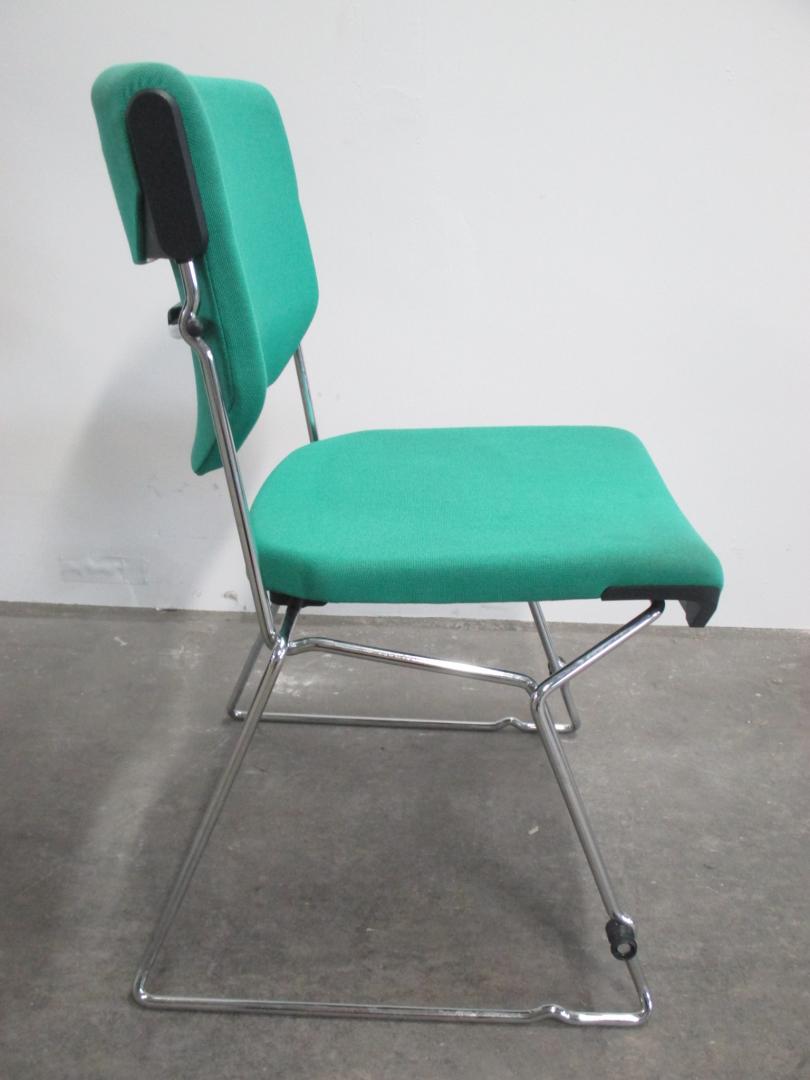 【18脚入荷!中古希少】Giroflex社の名作スタッキングチェア 肘無しループ脚タイプ グリーン 【中古会議用チェア ミーティングチェア】【ロット】- 川崎店