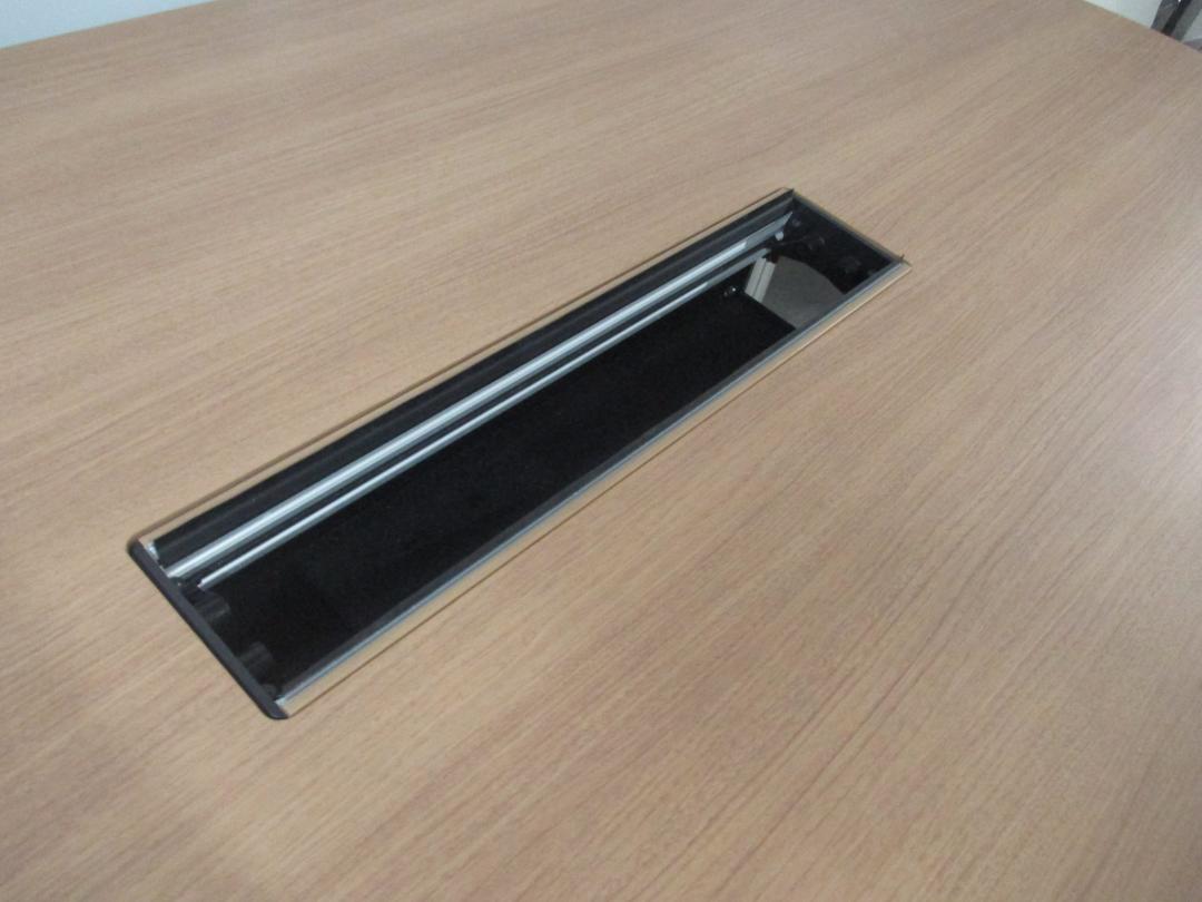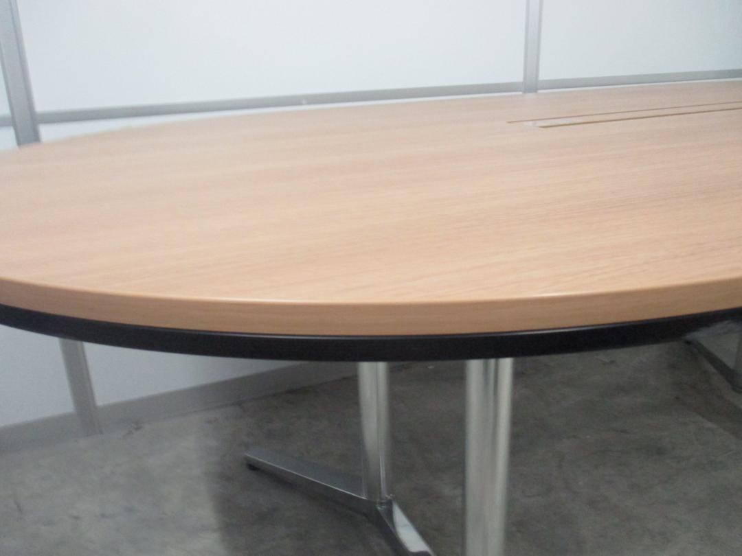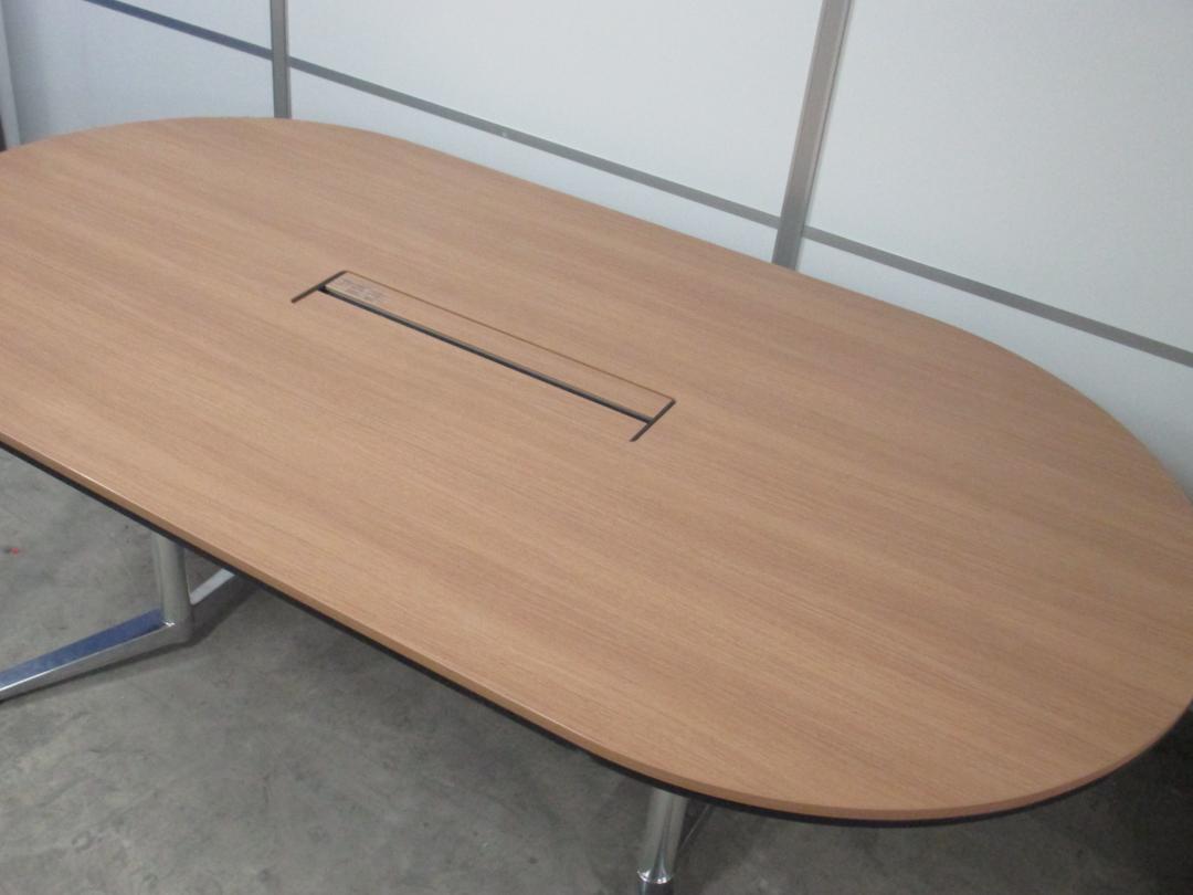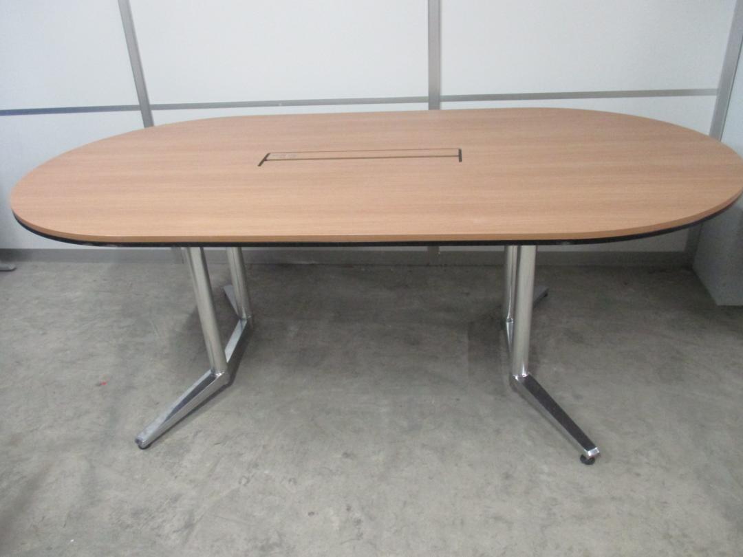 【1台入荷!状態良好】配線機構付きの楕円型 ミーティングテーブル 幅2100 奥行1100 4~6名様用としておすすめ【中古オフィス家具 会議用テーブル】- 川崎店